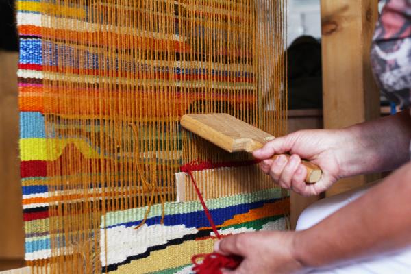 One OVA bag requires 35 hours of weaving, an OVA pillowcase takes 45 hours, and an OVA carpet needs more than 80 hours of weaving. OVA pieces are made entirely of organic and home-grown materials. The initiative supports creative Bosnian women and contributes to preserving traditional Bosnian heritage.