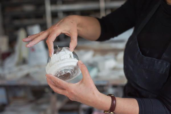 Patrizia Ramacci and her husband Vittorio, both restorers by training, turned to artistic Italian stucco more than thirty years ago. They were fascinated by its sculptural qualities, by its lightness compared to stone or wood and that there hadn't been fine stucco artists in Gubbio since the early 1900s. They started from zero to re-create demand for stucco products. At the beginning, they were so inexperienced that it was all trial and error. Time and passion, though, transformed their workshop Gypsea into a regular stop for art lovers. And even if Vittorio passed away in January 2021, Patrizia goes on creating handmade pieces, true to her beloved husband’s motto: No matter what you do, the result has to be flawless.