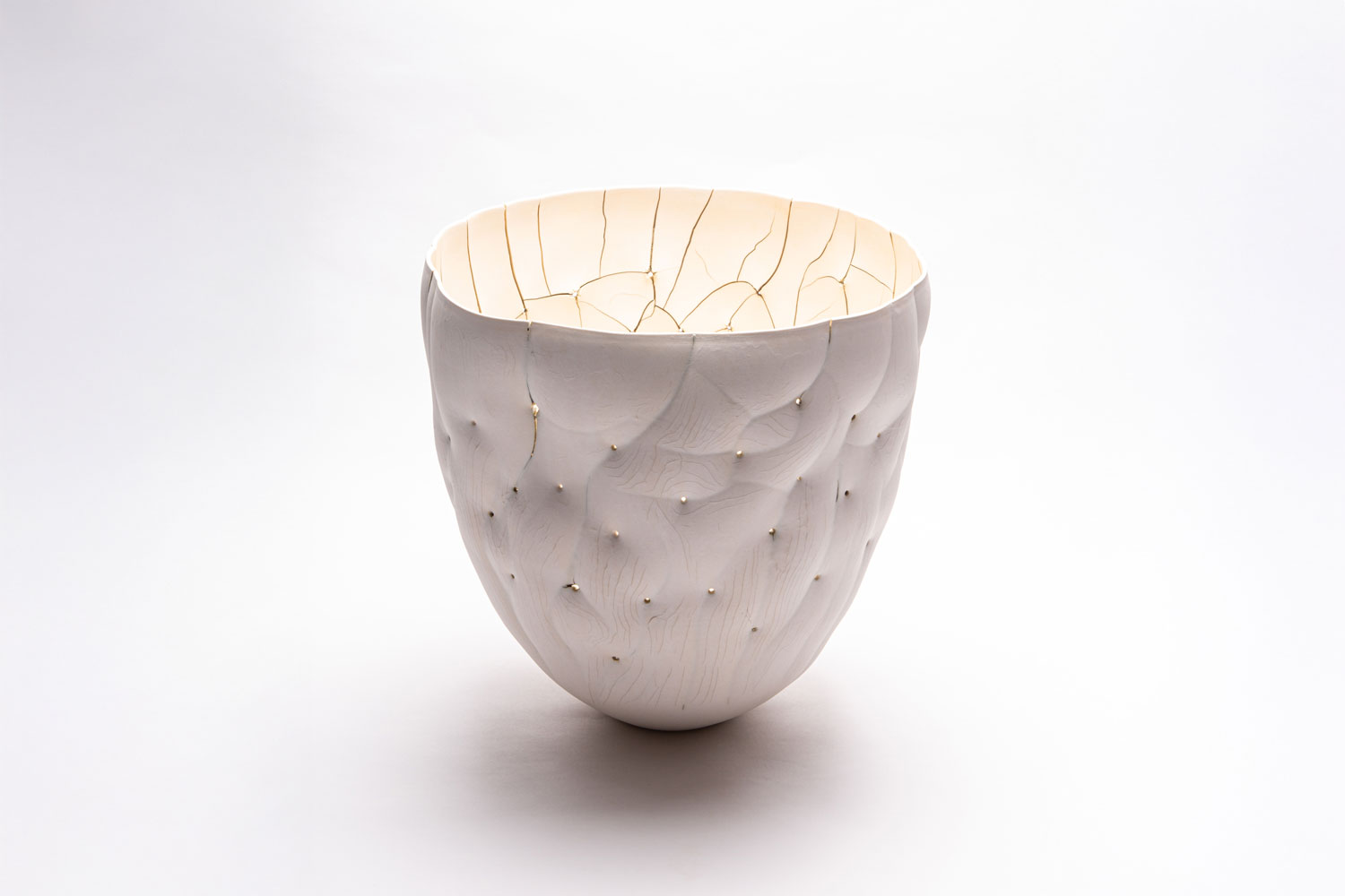 Paula Murray's work has evolved from functional forms to sculptural vessels where material tension results in visible fractures and movement. She came to ceramics while studying science at the University of Ottawa, and learned the craft in a cooperative studio before pursuing further training at Sheridan College. "The tactility of working directly with a material and shaping it by hand led me to change my path and open my ceramics studio," she explains. Paula relies on her background in science to understand high-temperature processes and oversee material transformation. Her studies also allow her to solve technical issues, which fulfil her desire to challenge the properties of porcelain and create work that seems impossible at first glance. Alongside her studio practice, Paula has played a significant role in developing community-based ceramic spaces, supporting access, skill transmission and long-term engagement with craft.