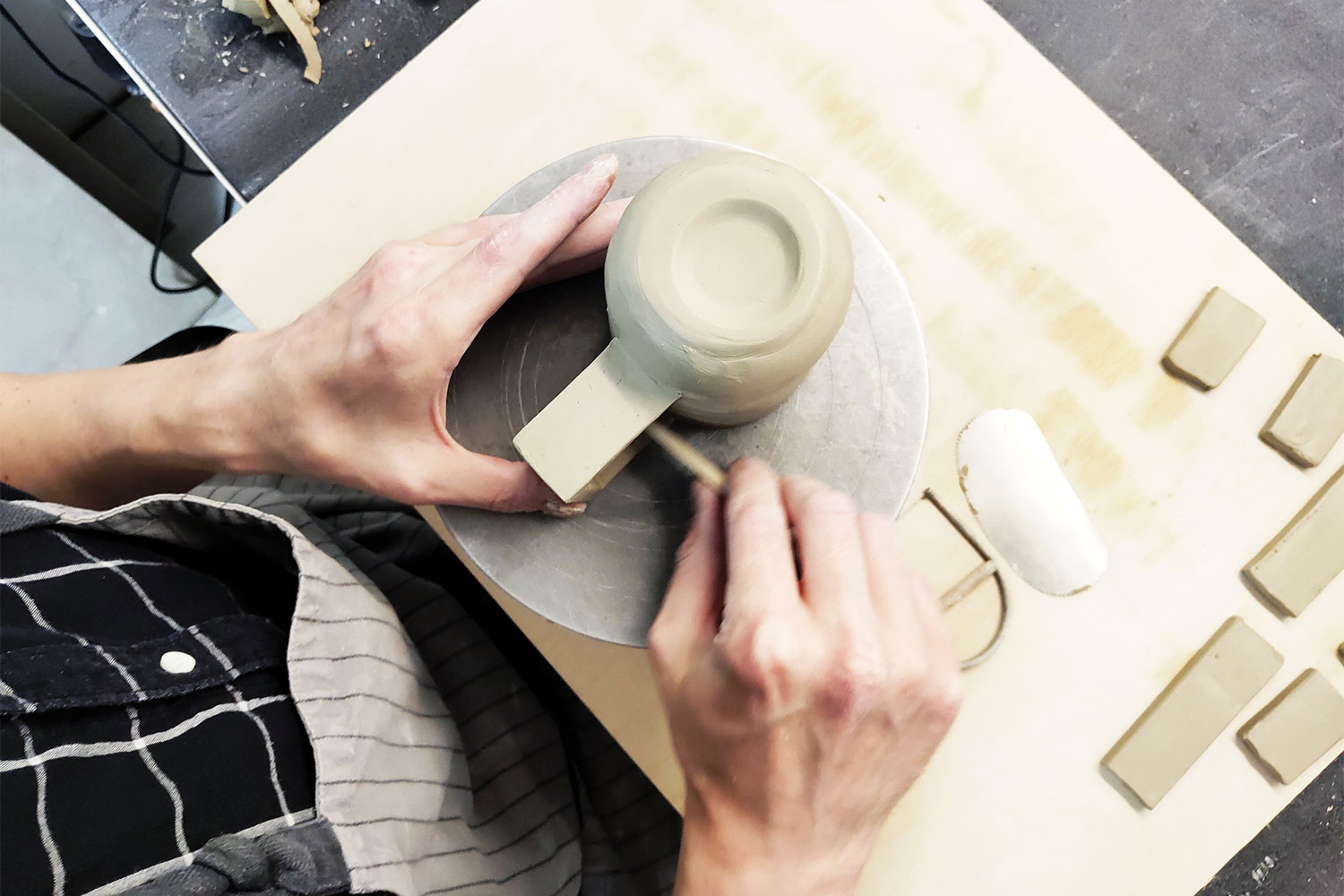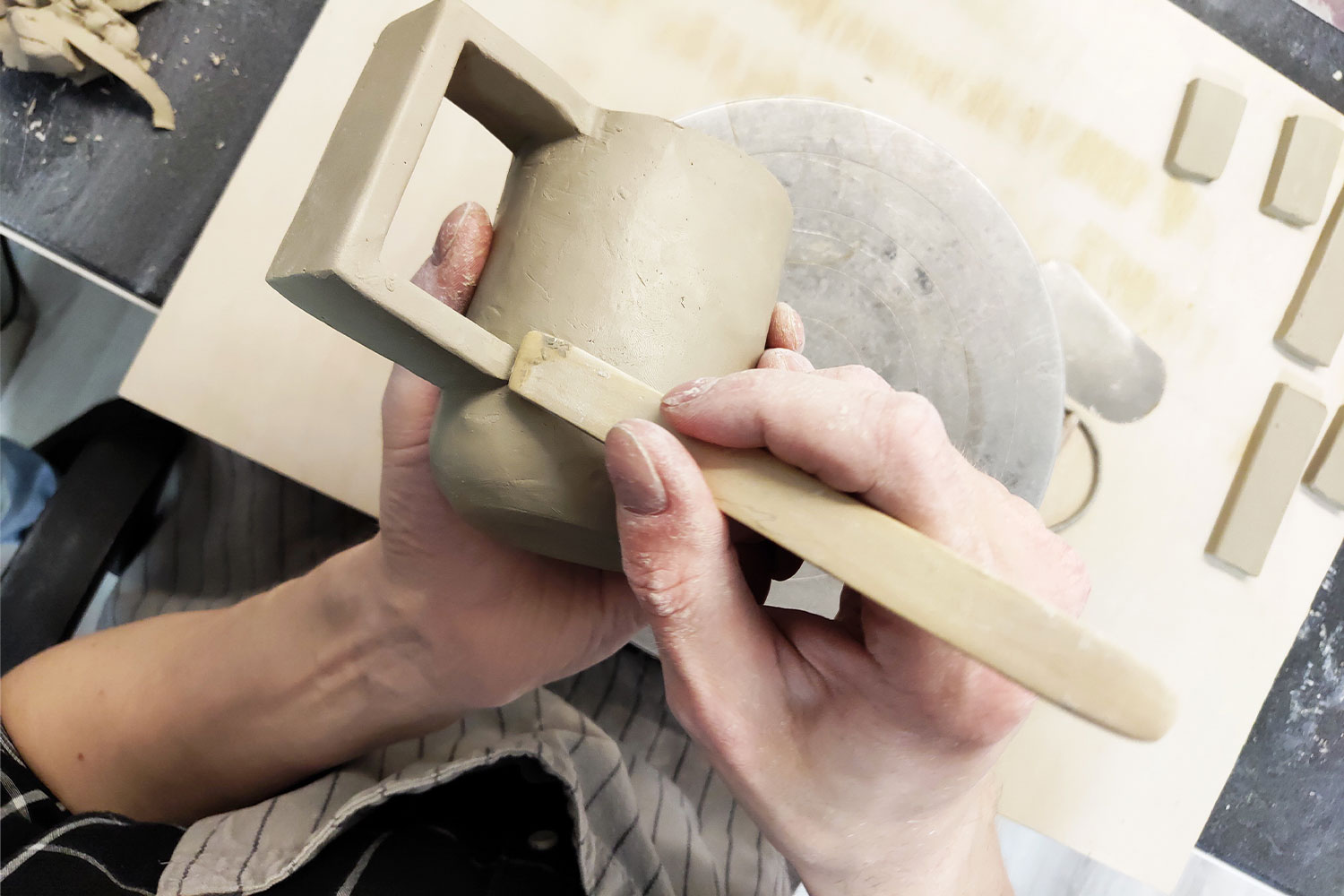 Paulius Vitkauskas has been creating ceramics for more than ten years. In his childhood he picked up plasticine, but has now moved to creating interior design pieces out of clay, mainly cups. With his wife Evelina, they created the Native Universal Ceramics studio, where he creates hand moulded minimalist Nordic design cups, perfect for contemporary interiors. "However different we may be, we all usually start our day with a hot cup of coffee or a refreshing mug of water. Home is where your cup is," says Paulius. "It doesn’t matter who you are, where you’re from, what you like – you’ll find a cup suitable for you in my ceramics studio." He prefers cups that have the most intricate handles, since they present a big challenge.