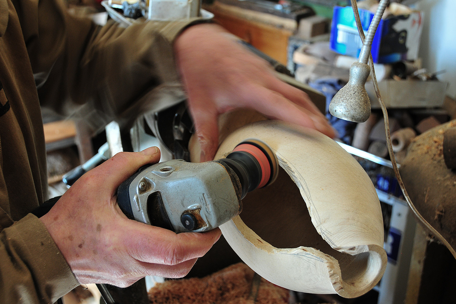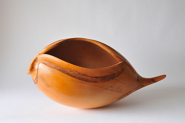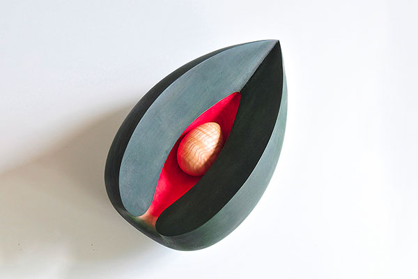 Peter Hromek moved from former Czechoslovakia to Germany at a young age. He studied mechanical engineering and later, encouraged by a friend, built his first guitar, which led to him devoting ten years to this craft. Peter even wrote and published a book on how to make guitars. But fate led him to woodturning, which became his passion. He now turns hollow sculptural objects using multi-axis turning. His objects are showcased in exhibitions not only in Germany but also in Austria, the USA, and Australia and are praised by collectors. His sleek and slightly erotic objects can be used in interiors, as sculptures and as functional yet intriguing vessels. Peter loves technical challenges and also creates original pepper and spice grinders. In addition to the unique turned shape, he has also developed a highly resistant grinding mechanism for these homeware items, heritage of his former training as a mechanic.
