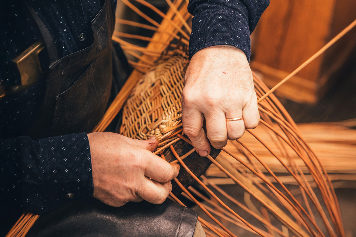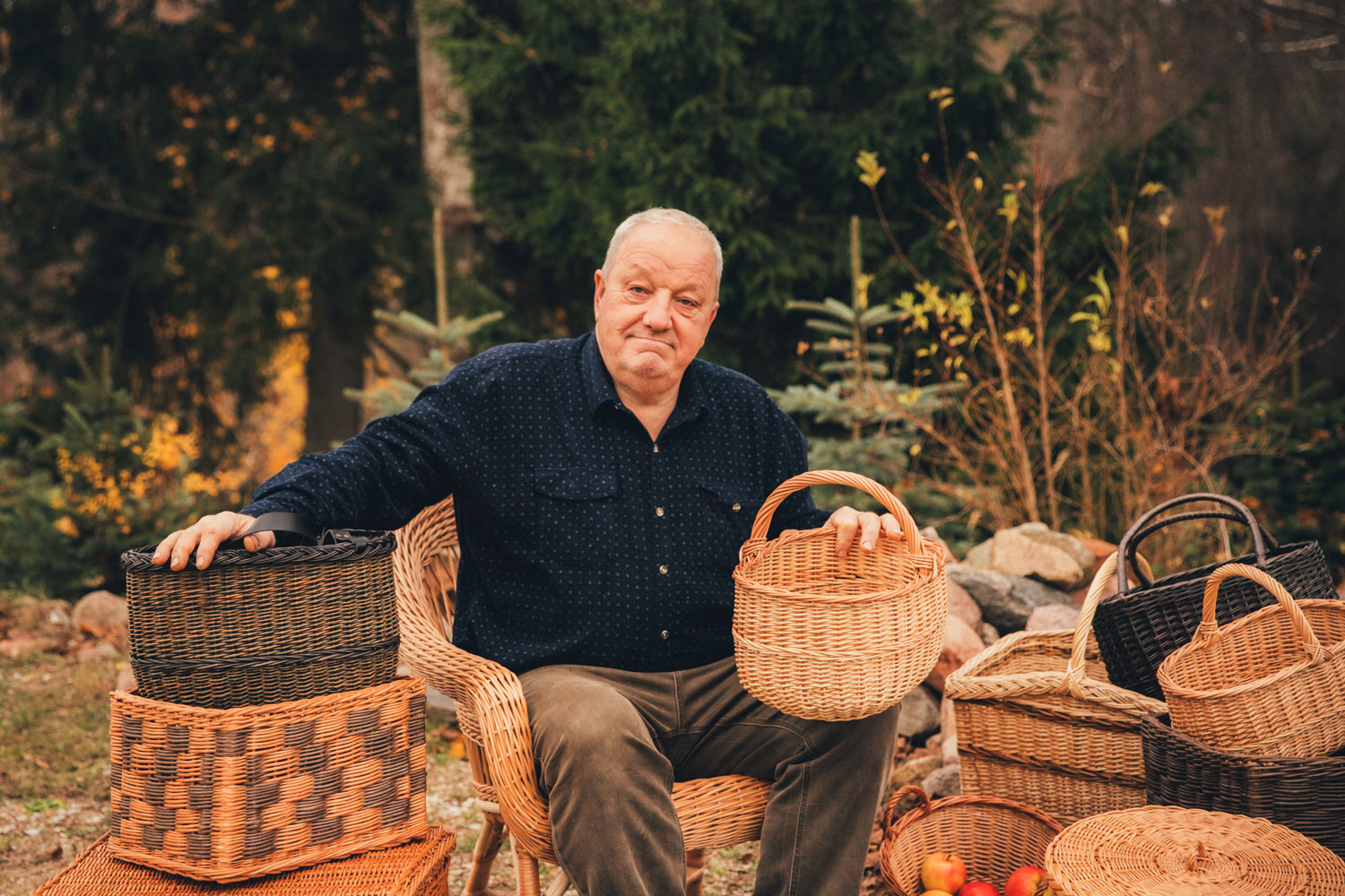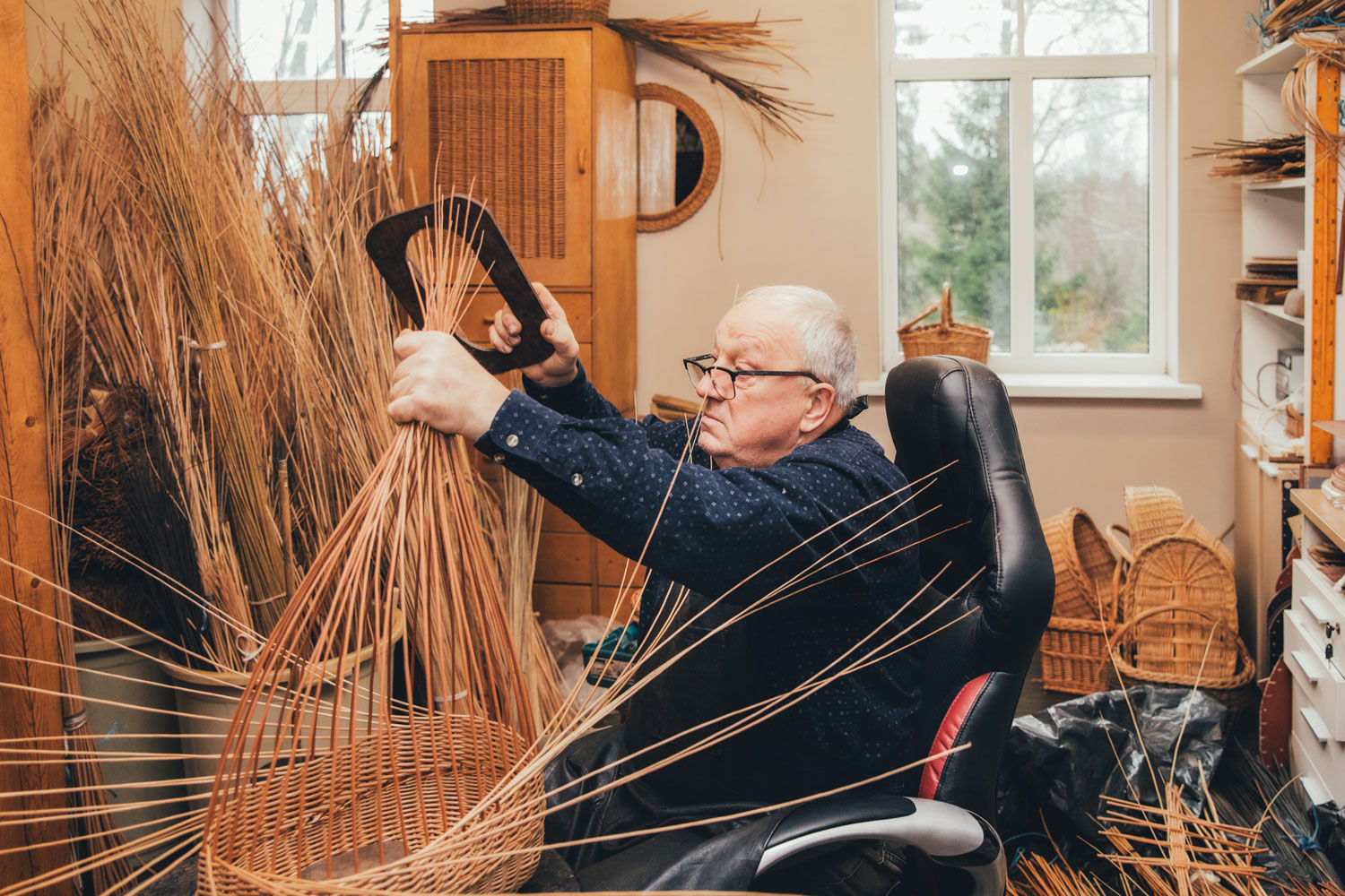 Peteris Tutans hand weaves shopping baskets, mushroom baskets and chests using both peeled and unpeeled willow. He learned his craft as a teenager, but only took it seriously later in life, in the 1990s. Peteris started by making baskets as gifts, but his practice gradually grew into a life-long passion. "Upon seeing my work, other artisans would share their excess of custom orders with me," he says. His clients appreciate his hard work, as he spares no effort in creating high-quality objects. Regardless of the design or product, Peteris does not weave for the career-aspect of the craft, he weaves out of pure love to his craft. "Weaving became so rooted in my life that my mood gets affected if a day passes by without doing it. This is where I know it is time to get back in my workshop," he says.