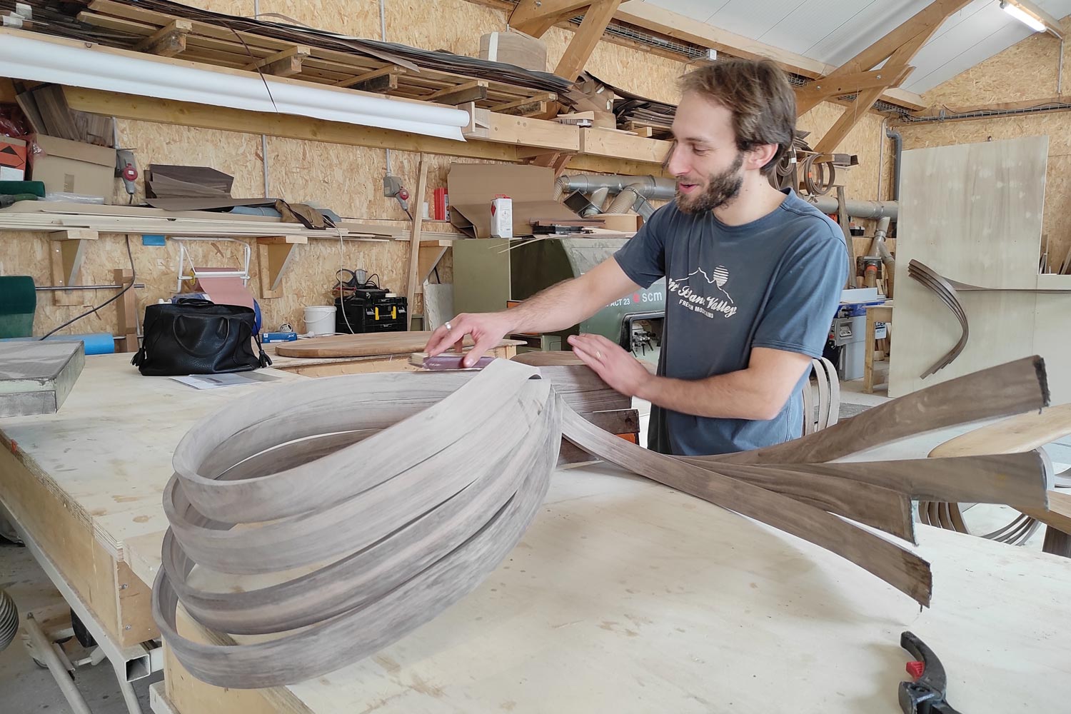 Pierre Renart’s specialisation is organic shapes. His contemporary designs with their spectacular curves evoke the work of architects Zaha Hadid or Antoni Gaudí. Pierre is interested in creating curves that reflect nature rather than being man-made. He makes desks, consoles and tables, that seem to defy gravity and he seeks to adapt his designs to blend with interior spaces. His technique is that of lamination. He uses thin laminated layers of wood and glues them together with resin to bend them into the shapes he wants. It is no secret that Pierre's creations such as Möbius Console and Möbius Bench are inspired by the works of German mathematician August Ferdinand Möbius. This collection earned him a big following.