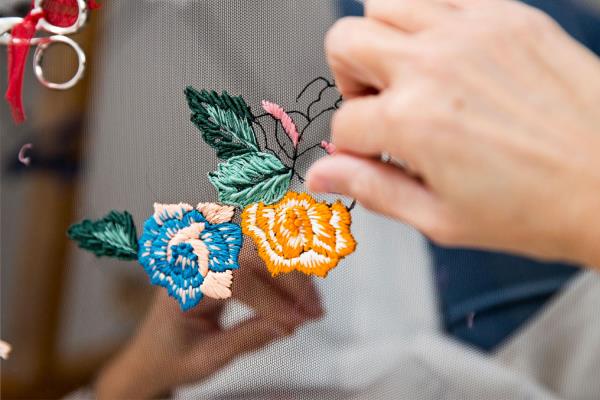 Today his daughter Raffaella continues his legacy, running the atelier with a team of skilled embroiderers. Their high quality craftsmanship has led to collaborations with the biggest Italian fashion houses from Gianni Versace, Valentino, Giorgio Armani, and Dolce&Gabbana to Bottega Veneta, Etro and Prada. Their beautiful handiwork embellishes many haute couture, as well as ready-to-wear pieces. The atelier has a reputation of excellence in the fashion world, not only for its precious embroidery skills, but also for its innovative design approach and use of materials, and contemporary vision.