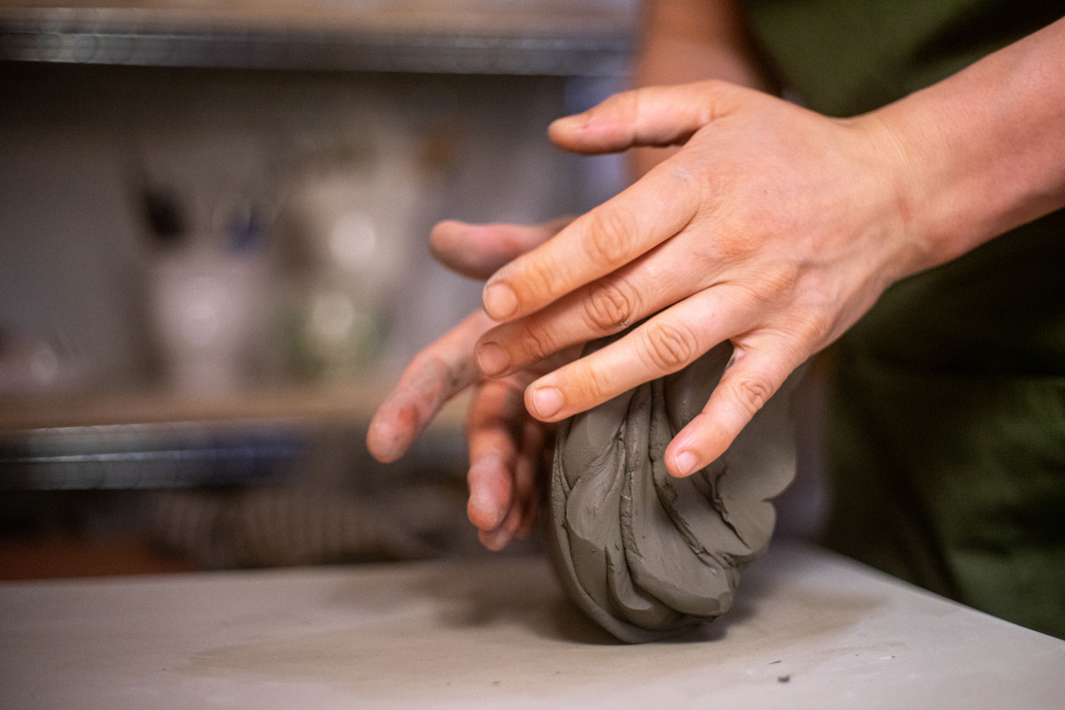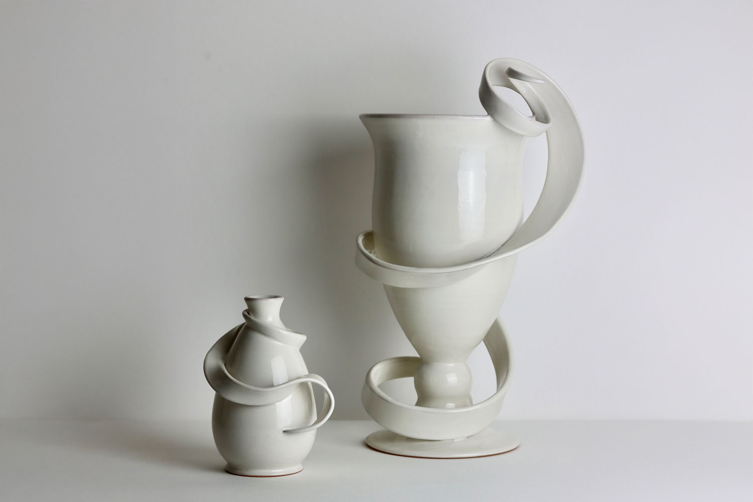 Poiret Masse creates originally playful ceramic pieces in her studio, La Guardaroba Firenze. "From a young age, I explored art through hands-on work with various materials and techniques," she says. She studied art history and Italian at the College of Liberal Arts, then spent a pivotal semester in Siena focusing on painting restoration. “It was thrilling to put my hands on layers of history,” she shares. Poiret researched women painters, specifically 17th-century artist Violante Siries Cerroti, but felt she was missing a tactile element in her practice. She sought manual engagement, and found Romano Pampaloni’s school and workshop. When facing the forms emerging from the wheel, Poiret experienced an instant, life-changing connection to ceramics, a calling that shapes her practice today.