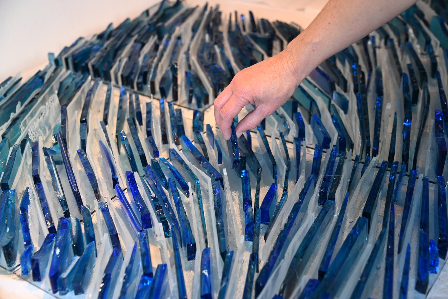 Priska Jacobs' first encounter with glass was an unsuccessful attempt at sculpting, as the piece she was working on exploded. "This was the beginning of a new path, as I decided in that moment I would learn to work with glass," she explains. It was then a piece by artist Bernard Dejonghe that convinced Priska to lean towards lost-wax casting. Light, glass and what they create together is at the heart of her work. Priska's main inspiration is ice, which she delicately and sublimely recreates in her pieces. "Glass is more than decorative, as it can convey atmospheres that no other medium can with its use of light," she says. Priska still holds on to the first piece she ever made: a wall relief made of clear glass and copper inclusions that hangs in her home to this day.