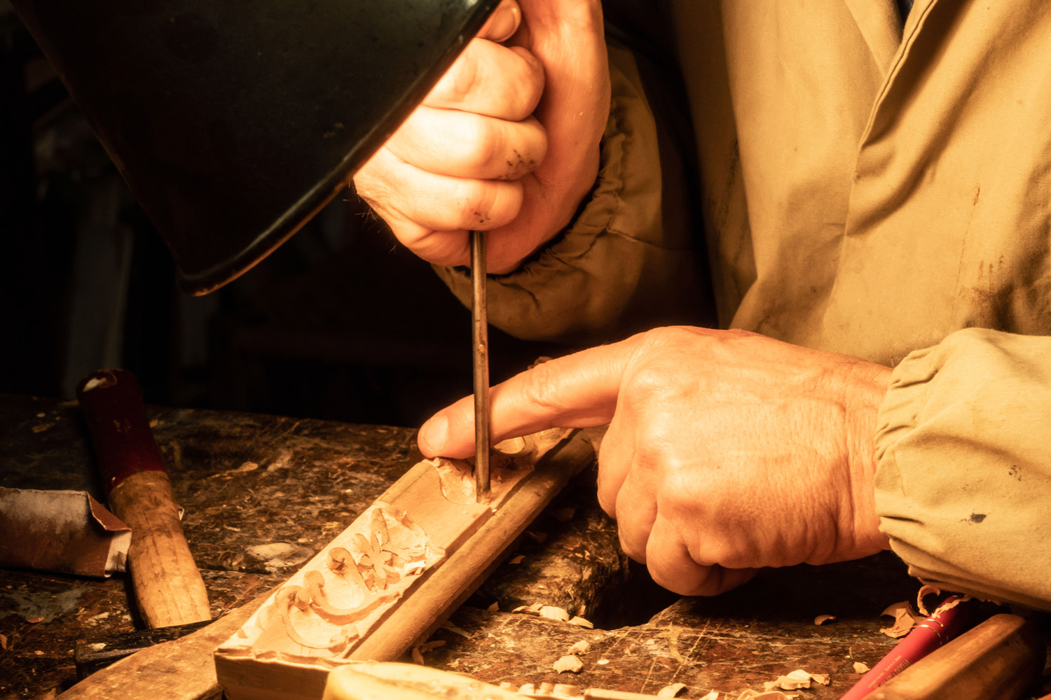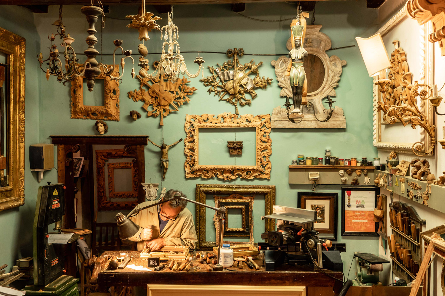 Carlo Puccini began by working in the historic Bartolozzi and Maioli workshop, one of Florence’s most prestigious antique ateliers. He took part in the important restoration of wooden works for the Abbey of Montecassino and the secular choirs. After mastering the art of making frames, in 1989 he opened his own workshop in Florence. The concept of carving is to create objects that, apart from being very beautiful, must have a practical purpose. This is why the workshops of Florence dedicate themselves to the production of furnishing accessories and frames. The workshop of Carlo also delivers works of cabinet making, carving and gilding, as well as special furnishings and ornamental objects. It excels in the creation of decorated and golden frames.