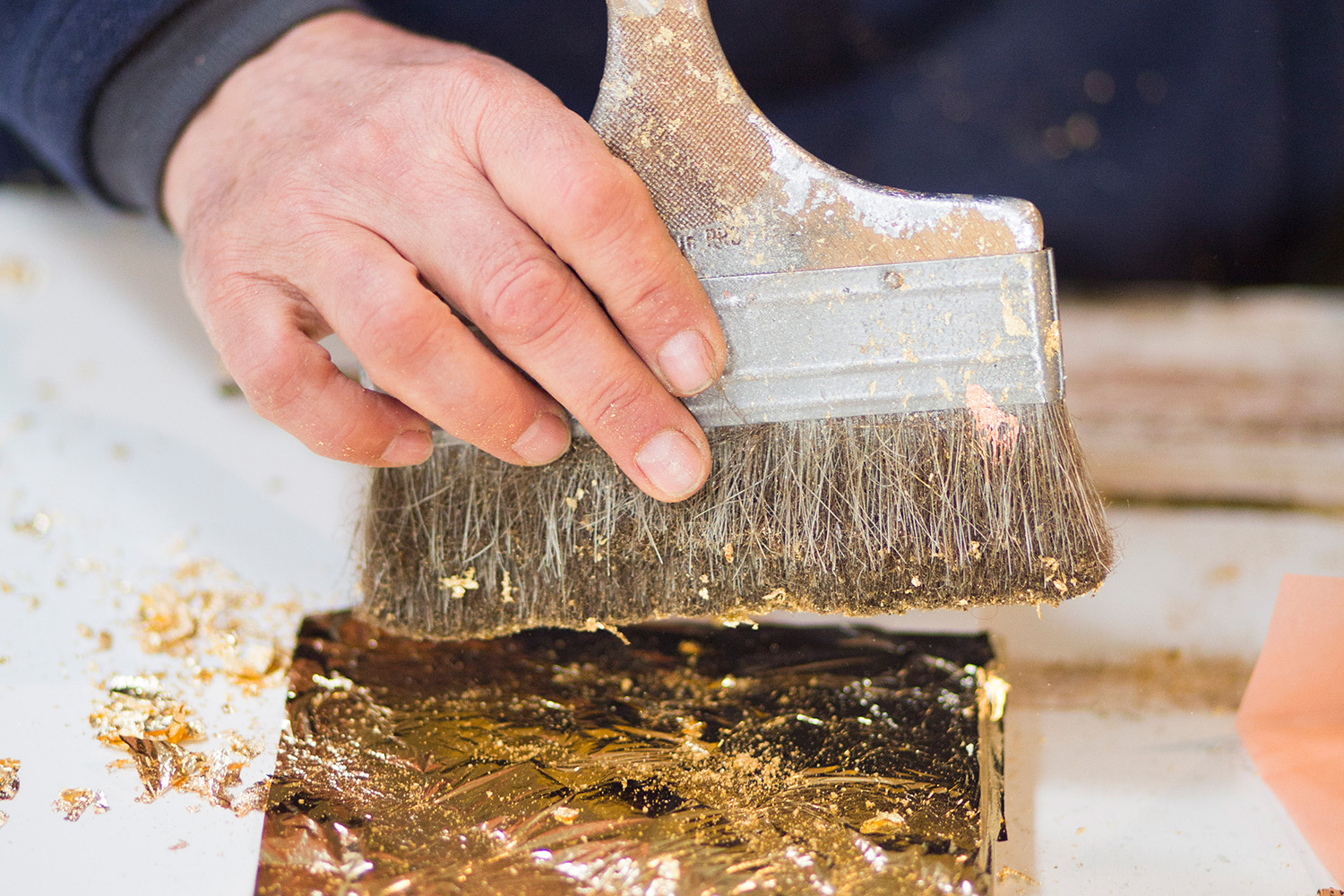 Born into a family of artists, Rahel Ulveczki had no doubt about her career path. After high school, she attended art school and worked simultaneously in her father Gabor's workshop, where she framed, painted, restored, and gilded artworks. Eventually, together they formed an established creative duo, both as visual artists. They utilise beaten metal sheets as their medium to coat surfaces instead of using paint according to the tradition. Their techniques, including the verre églomisé method, fascinates Rahel the most. Their approach is based on traditional gilding techniques, but they constantly push the boundaries of the craft to enhance their artistic expression. Much of the duo’s artistic journey is the result of experimentation, accidents and mistakes, and is not tethered to achieving perfection, which to Rahel and Gabor, would feel too restrictive.