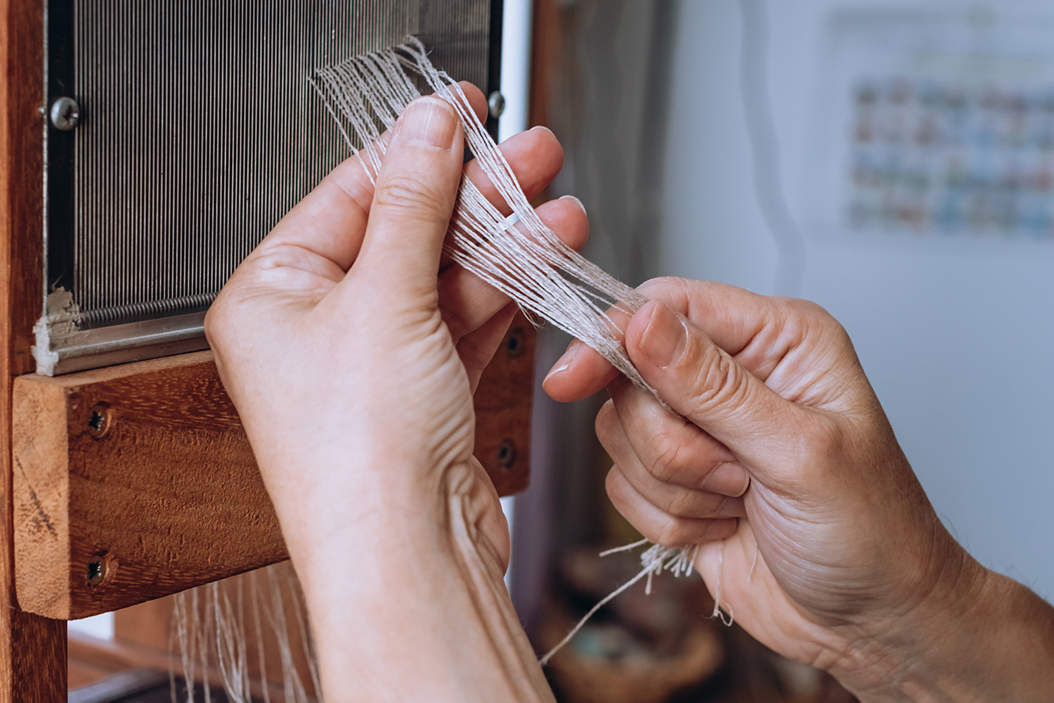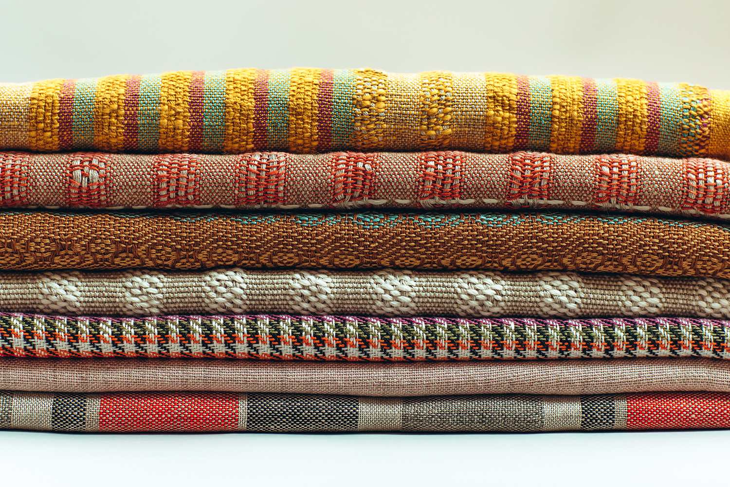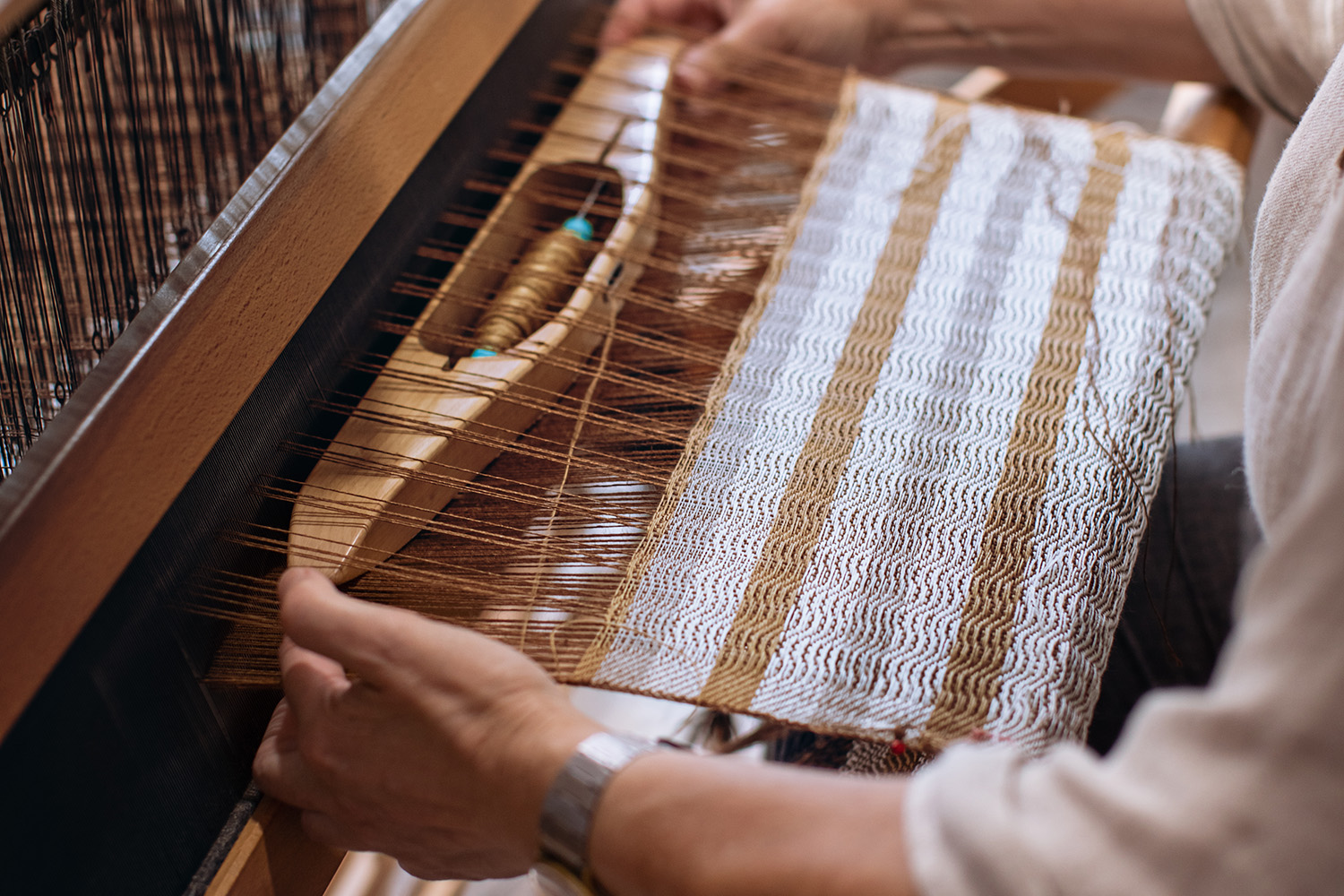 Marisol Ramos Leo's teacher, Tomás Hernández, taught her to weave wool fabrics for traditional costumes of the Canary Islands. But Marisol was more interested in linen because of its characteristics and properties. "One fine day I took the step to specialise in this wonderful fibre and now I am the only workshop dedicated exclusively to linen," she says. She opened her workshop in December 2020 and still remembers the first object she made. "A scarf that has served me as a prototype, to test how the fabric behaved over time and as a model to show what I am capable of doing with the loom," says Marisol. She is often inspired by nature, but also by architecture, music, clouds, everyday objects, a painting, or cinema.