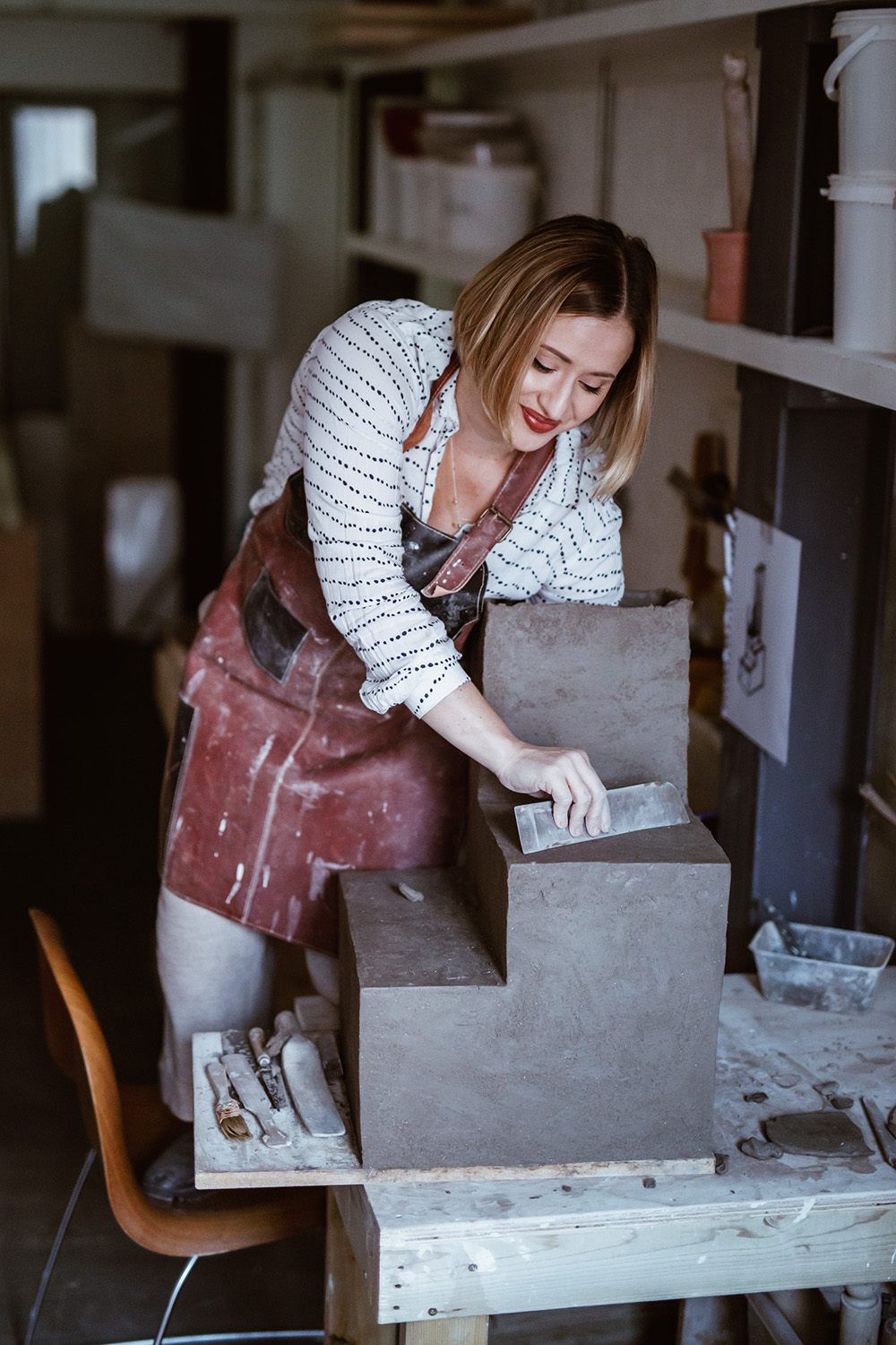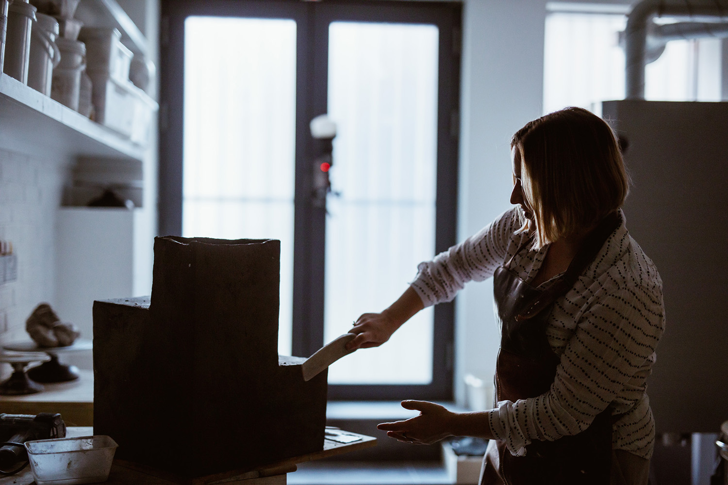Irina Razumovskaya’s interest in ceramics was first piqued at the age of five, at the Hermitage Museum in her city of birth, St. Petersburg in Russia. “As I was looking at ancient Greek pottery, the distant past suddenly felt very close,” she says. “I could even make out the fingerprints of the ancient makers.” This childhood fascination grew into a passion for working with clay. “I did not want to do anything else. This is the language that I speak most fluently.” In 2017, she established her studio in London, the city where she now lives and also teaches – at the Royal College of Art. Irina specialises in large sculptures and complex glaze chemistry. Her art often reflects the changes that occur naturally in architecture with time, due to the ageing of materials.