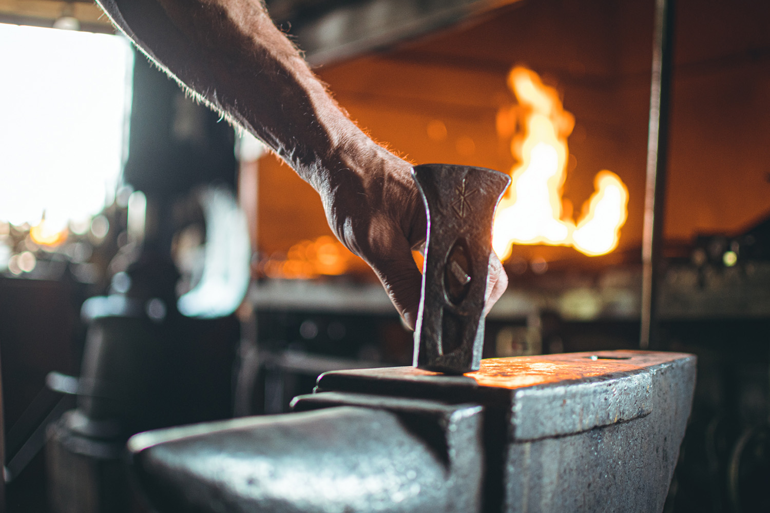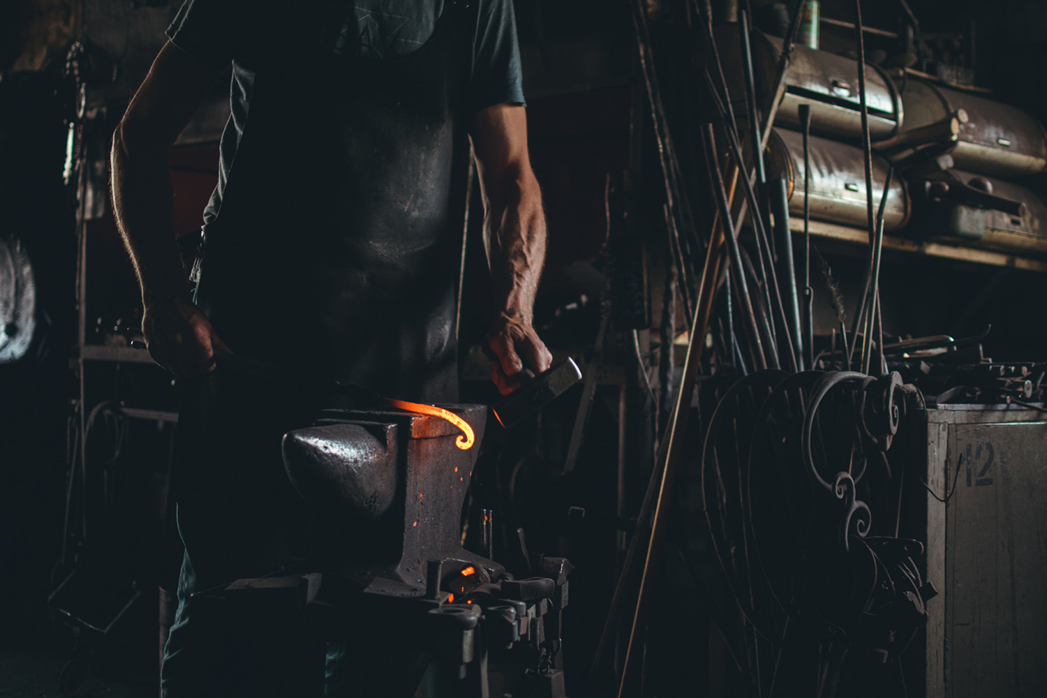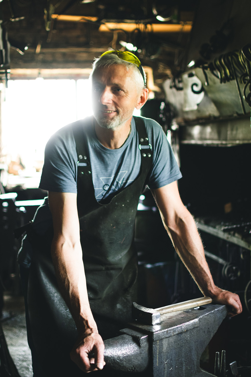 The grandson of a blacksmith, Ričardas Grekavičius is self-taught and came to this craft by vocation. For him, blacksmithing is a magical craft, as a blacksmith is a person who controls fire – controls and respects it at the same time. Ričardas also respects the tradition of Lithuanian folk blacksmithing. He is a member of the Lithuanian Folk Artisans' Union and the Lithuanian Blacksmiths' Union. His works are certified as national heritage products, and in 2019 he was awarded the honourable title of the Best Lithuanian Blacksmith. He forges Lithuanian iron cross tops, so-called 'little suns', crosses, small architectural details, and fences for gravestones at his forge in a remote village. Ričardas often draws inspiration from nature, turning crosses into trees and sprouting branches with leaves and flowers.