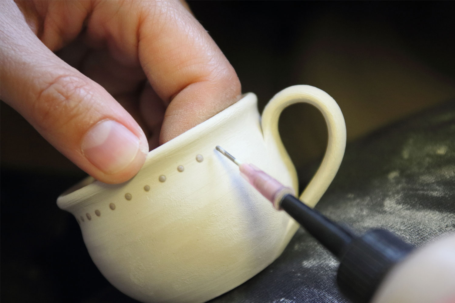 When he was a boy Robert Jehn-Olszewscy would play among the furnaces at his father's ceramic tile workshop, having fun pretending he was Bruce Lee punching piles of broken ceramic tiles. So there was little doubt he would later become a ceramicist himself. As a student in 1993 he continued working independently in his father’s workshop. Then he met Monika, when they both studied at the Warsaw University of Technology. Monika fell in love with Robert and ceramics at the same time. "We used to admire traditional folk craft," explains Robert. "What we observed is that in a pottery workshop there’s always family working together. That’s what we like most – just the two of us, working with our own hands."