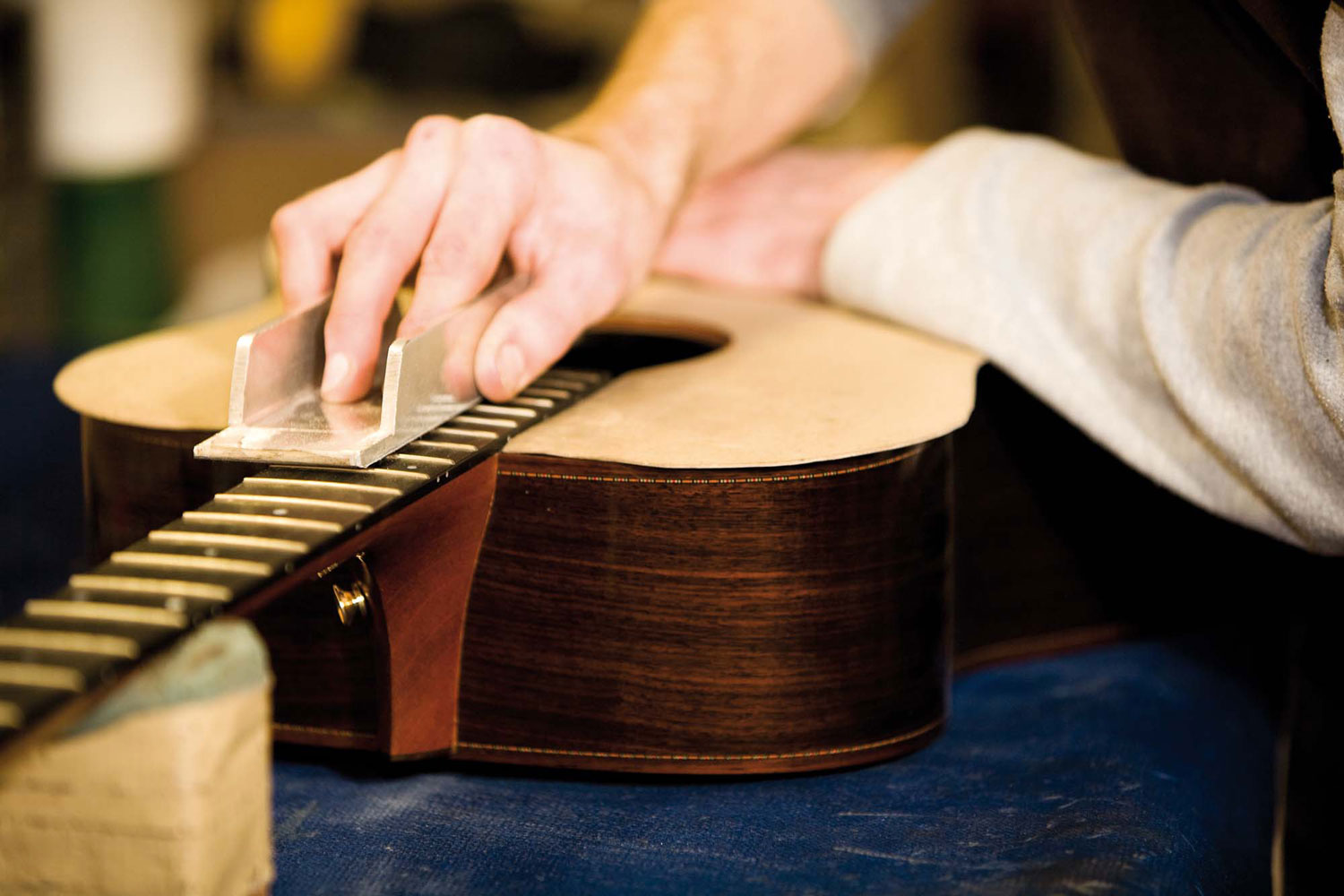 “I have a particular view of guitar making” says Roger Bucknall. “I believe it is a ‘calling’, a lifelong passion, a desire to reach ever higher standards. A musical instrument should have its maker’s personality in every component, and he has a duty to leave behind some contribution to his art, as has every maker before him.” At Fylde, at least 95 percent of the work is at the bench, with dedicated craftsmen working with traditional hand tools. The workshop has the best possible facilities and amazing stocks of the finest materials. The designs are the result of a broad technical training and research, coupled with 50 years of experience and development working alongside the world’s finest musicians, including Pete Townshend, Martin Carthy, Paul McCartney, Mick Jagger, Keith Richards, Gordon Giltrap, Martin Simpson, Eric Bibb, Nancy Wilson, Sting, Al Di Meola, Lisa Hannigan and John Smith.