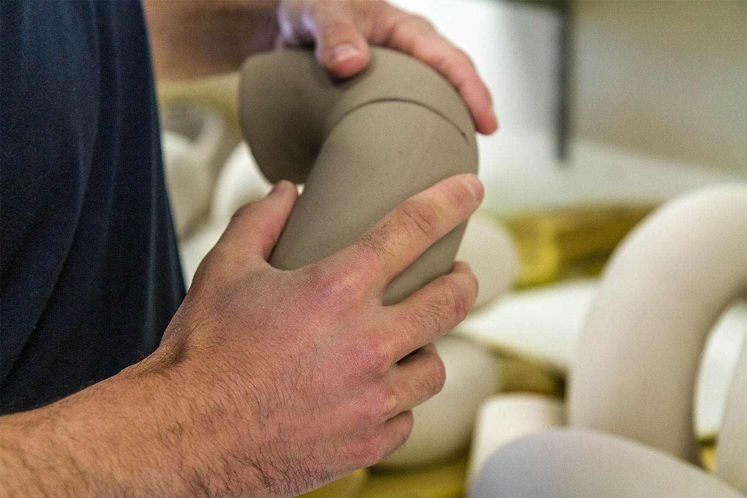 Though he studied architecture and engineering, Roger Coll never forgot his roots. As a child, he would visit his farmer grandparents, dig his hands into the earth and play with clay. Growing up, he also studied sculpture, and while pursuing a career in construction, he became obsessed with materials. On building sites he became fascinated by the shape and consistency of wires, bricks, rolls, pipes, concrete, wood and debris. Later on, when developing his artistic vision, he was influenced by both his family background and his studies. Now a full-time artisan, he works on his own, making moulds, shaping, baking and glazing clay, in order to create one-of-a-kind sculptures.