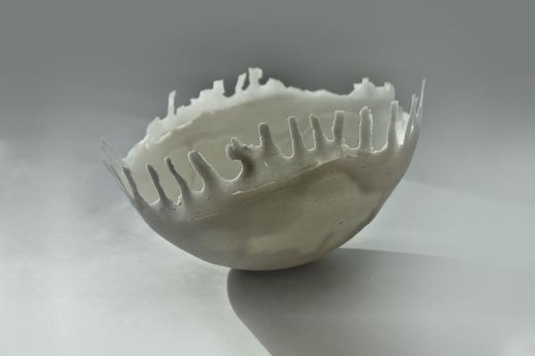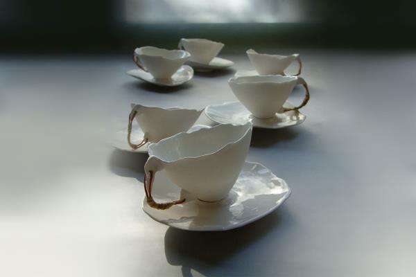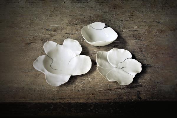 Nature and light are the guiding spirits of Roos Van de Velde, whose fascination for ceramics developed in her childhood. “I felt happy in nature, surrounded by trees. I grew up in the Pajottenland clay fields opposite a brick factory. I made my first pots with this clay, baking them in an outside wood-fired oven that my mother used for baking bread.” She then enrolled in the Royal Academy of Fine Arts in Antwerp, attracted by the magical light of the ceramic and sculpture studio. In the beginning she worked with stoneware, but with time her creations became thinner and thinner, so she started looking for a stronger clay. “I felt attracted by the white colour and transparency of bone china.”
