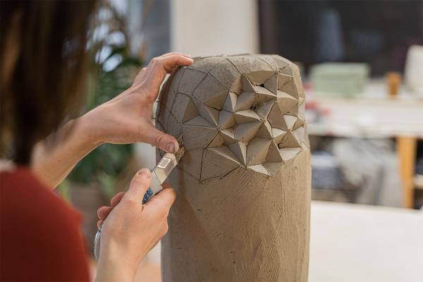 The ceramic works of Rūta Indriūnaitė (aka Rutrut) balance art and design. Each of her vases is unique, moulded and carved by hand. In a fast-paced world where many choose low quality mass production, she challenges herself to create objects without an expiry date. She studies nature and analyses the structures within it, stylising them to create designs for her works. Rūta doesn't like working fast; she likes to emphasise the time she invests in her works. Her creation process is a balance between creativity and technical artistry; she is very critical of herself and doesn't tolerate technical mistakes, yet she loves to experiment.