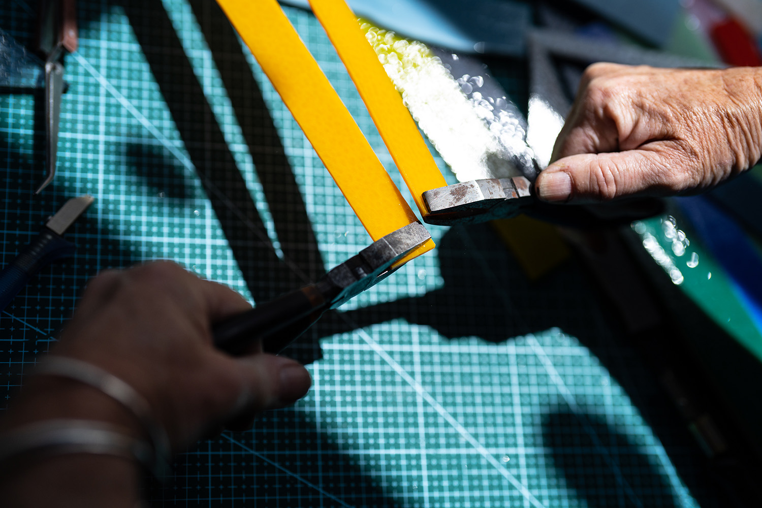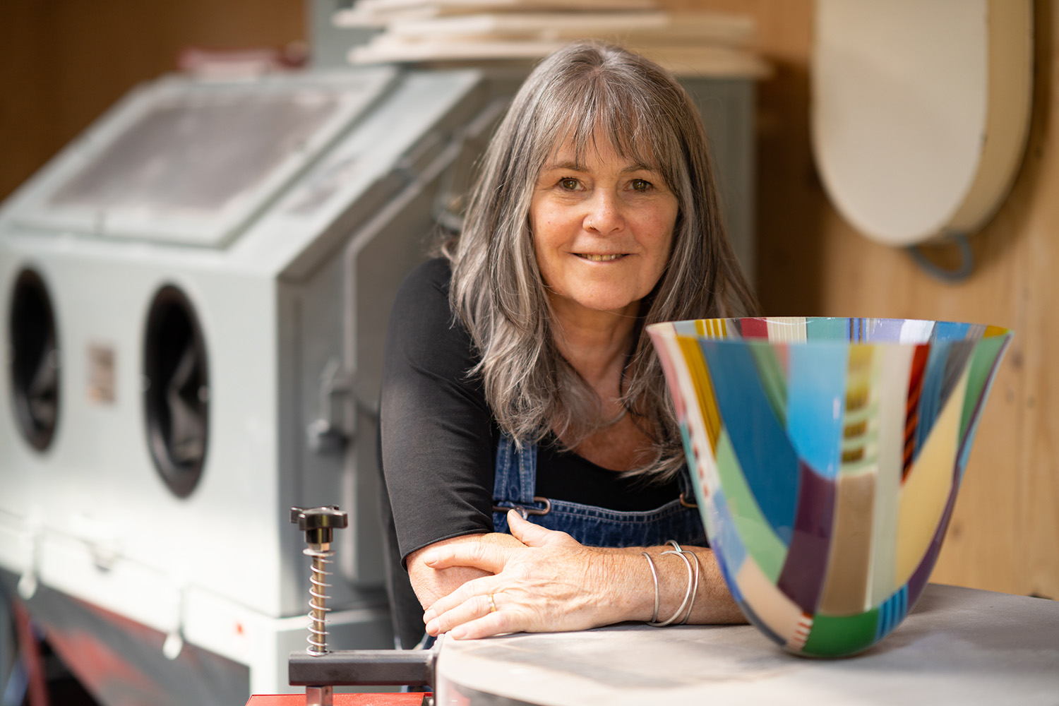 Ruth Shelley is an award-winning glass artist whose main interest is colour and how it is affected by shape, form, and pattern. Her background is in textiles, but she has been working with kiln formed glass since the early 2000s. Ruth attended many masterclasses including North Lands Creative Glass, UK and Bullseye Resource Centre, USA which enabled her to develop her skills. Ruth won the Glass Sellers Award at the British Glass Biennale 2015 and also exhibited at the British Glass Biennale in 2017. She has received many awards from the Arts Council for Wales. Her work can be seen in many UK galleries including London Glassblowing.
