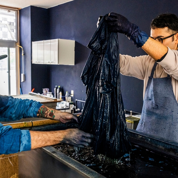 Halfway between a workshop and a laboratory, Ryukyu Indigo Lab was established in 2009 to pass on Okinawa's ancestral know-how in indigo dyeing, known as Ryukyu-ai. Out of the desire to save ancestral techniques which are on the verge of extinction, Yoshinari Kakazu, founder, has restored abandoned farmlands to grow Ryukyu indigo plant seeds with his associate Koji Okuma. The cultivation method requires research, in-depth agriculture management, as well as physical and mental strength to master the hard work involved in the complete production process. It takes hundreds of kilograms of leaves to produce only a small amount of dye.