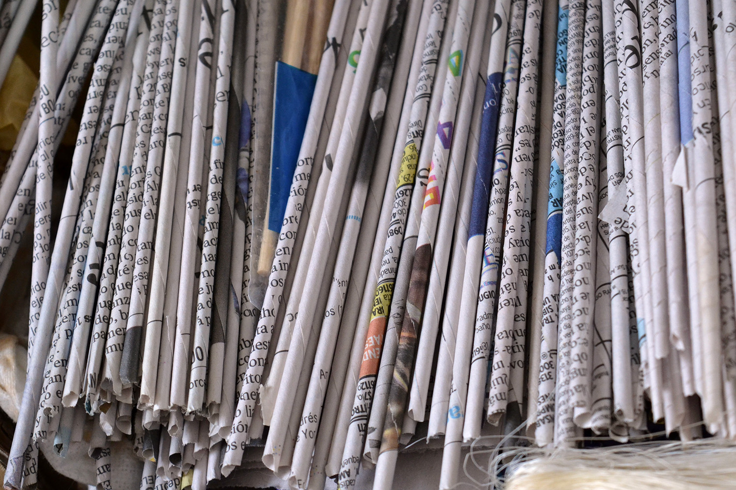 Sandra Avelino is a vehicle for transition, like her hometown, Chía, an intermediate city between fast-paced Bogotá and its neighbouring countryside. As she ventured into basket weaving, she became aware of the difficulty to access natural fibres where she lives. However, a fortunate experience with paper weaving technique spurred Sandra to transform what she had at hand. The fast-growing trend of digital content leaves stacks of unread printed newspaper and Sandra decided to upcycle it into beautiful basketry that many take for natural fibre. Transforming newspaper into wicker-like strands became her obsession. Once Sandra perfected her technique, she dared to be more innovative, and she now regularly prototypes novel decorative and utilitarian objects.