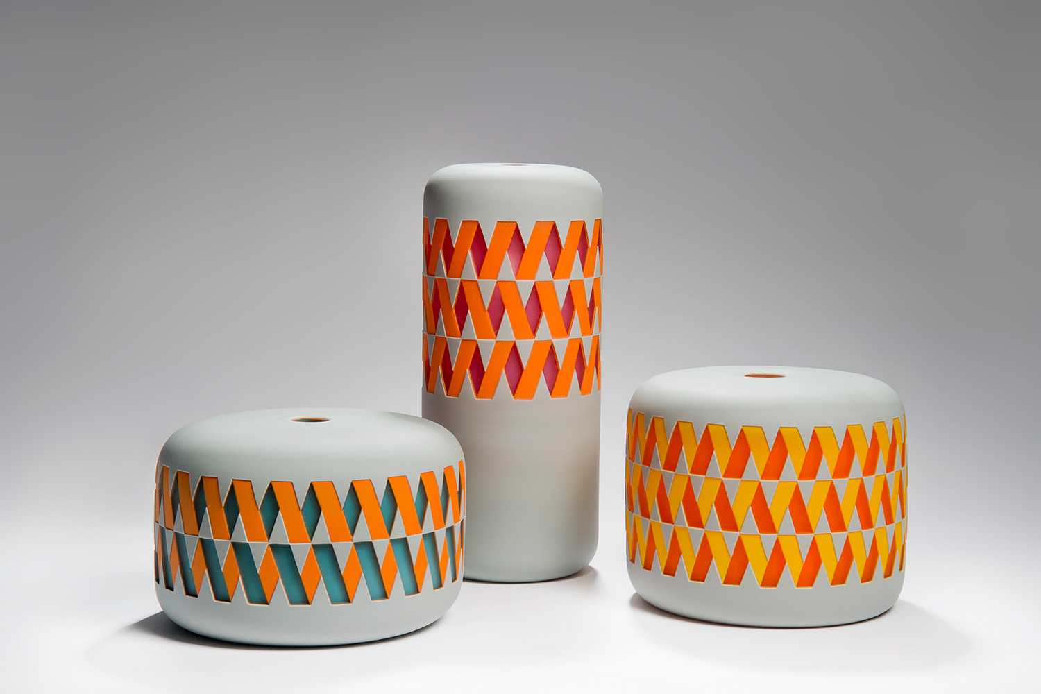 Sarah Wiberley holds a BA degree in 3D Glass Design from the Surrey Institute of Art and Design, and a Masters degree in glass from The Royal College of Art in London. Since 2004 she has worked in various glass workshops, either as part of a larger team or alongside an individual glassblower, gaffer or master. “The teamwork involved in glassblowing means you are always learning from those more experienced than you. I have trained with some of the best glassblowers in the UK,” Sarah says. She now creates her unique objects in her London-based studio and thoroughly enjoys the technical and practical nature of glassmaking, the teamwork involved and the immediacy of working with hot glass.