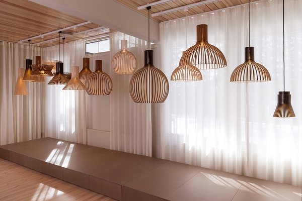 The minimalistic designs of Secto Design lamps, resulting from prototypes and experiments with the possibilities of wood, offer harmonious and warm light without a blinding shine due to their part-concealed light source. As such, they are suitable for public and private interiors creating, in Seppo Koho’s own words, ”lit-up spaces.” In ancient times, birchwood was regarded as the guardian of the people. That tradition continues in Secto Design lamps.