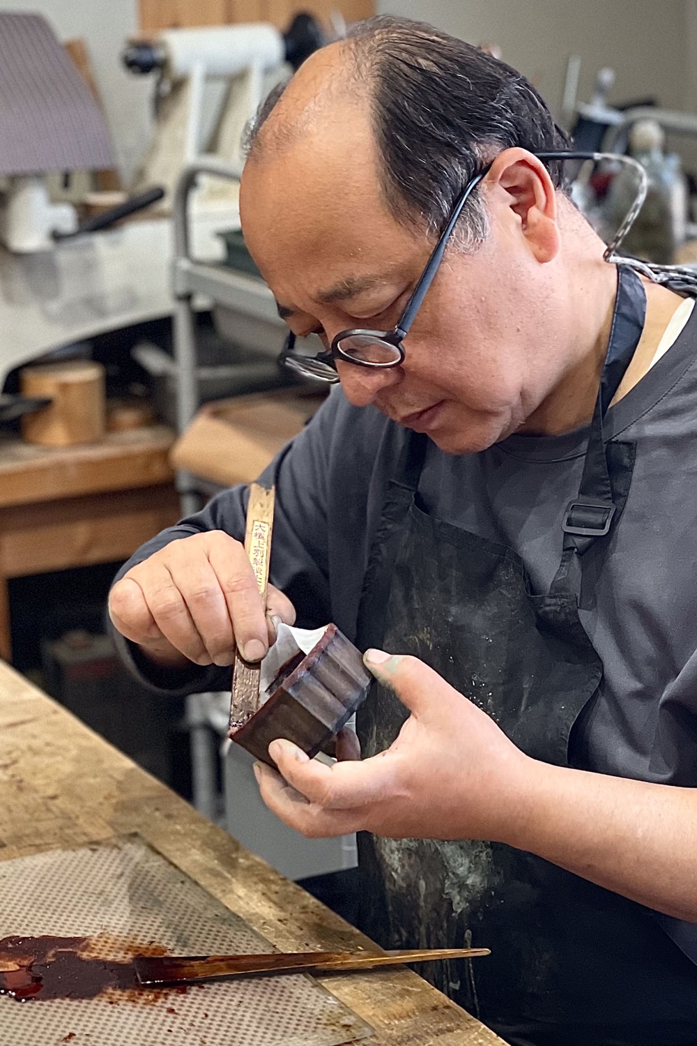 - Shinya takes charge of the entire creative process, from wood shaping to lacquering and decoration