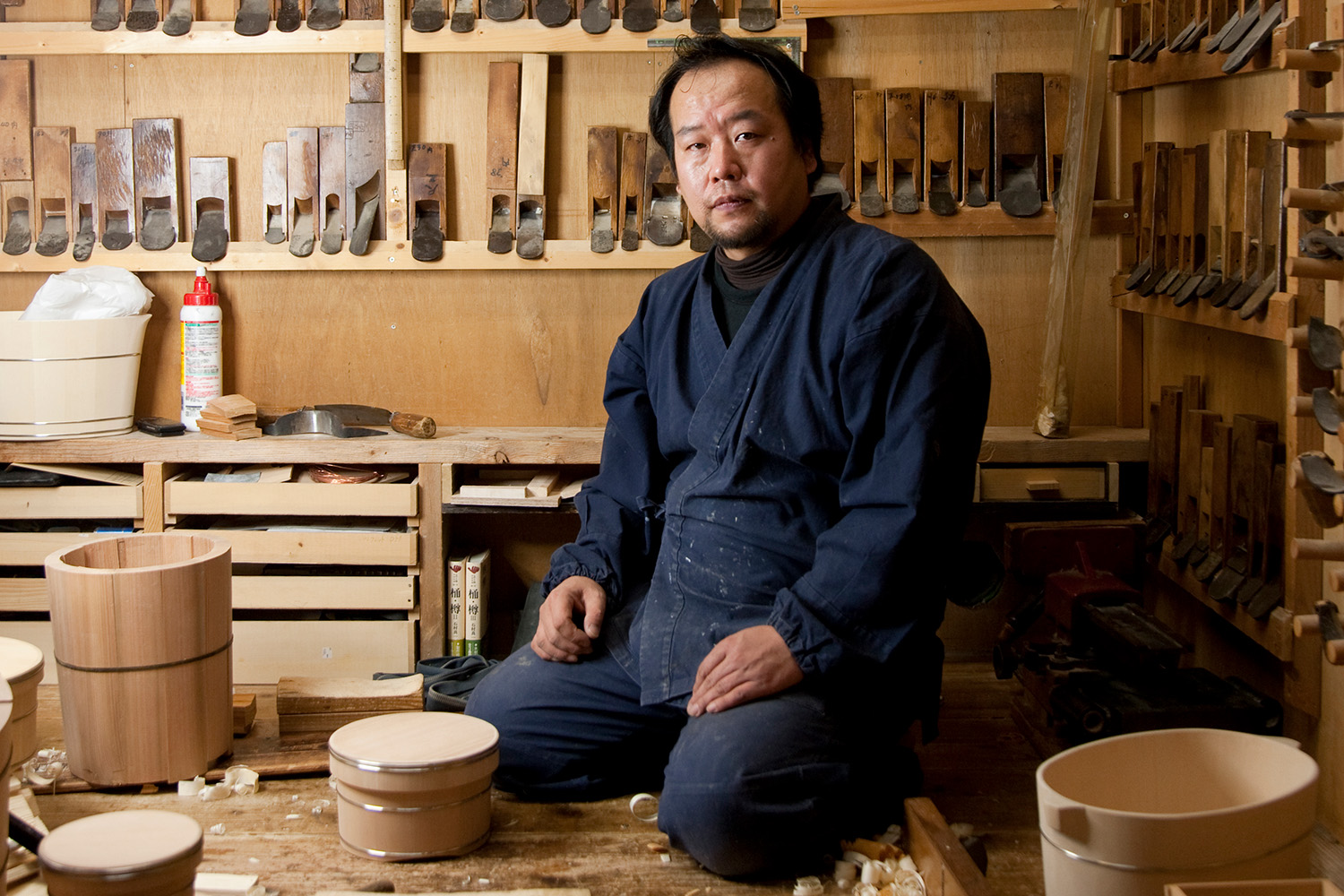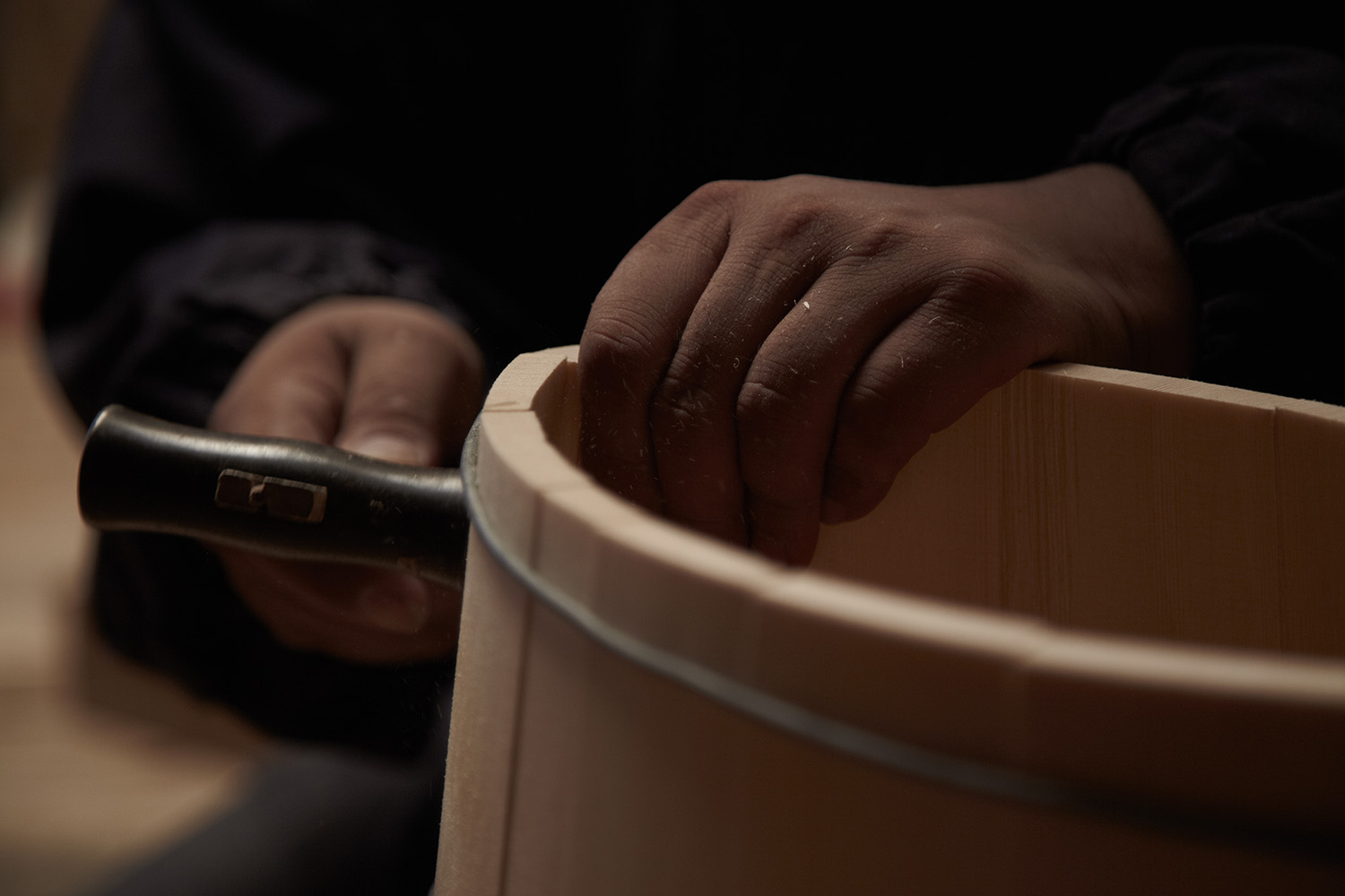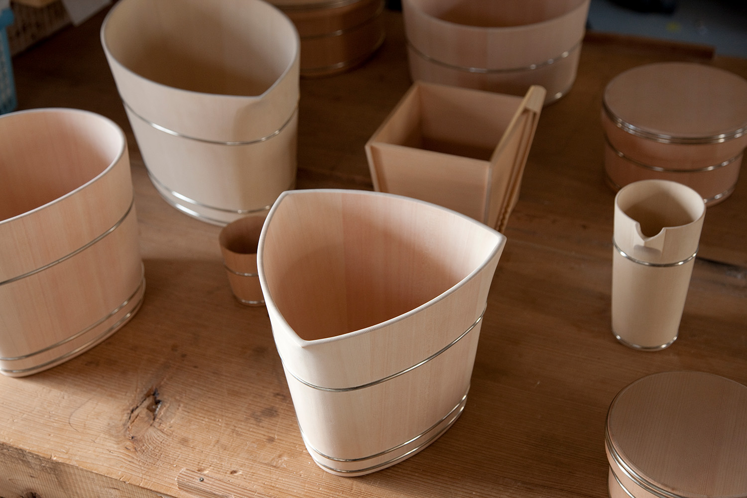 The son of Kiyotsugu Nakagawa, the highly prestigious Japanese Living National Treasure, Shuji Nakagawa represents the third generation in the Kyoto woodcrafting tradition. Not only a guardian and transmitter of knowledge, he is also a contemporary artist, exhibiting his work internationally. Rebellious as an adolescent, Shuji wanted to explore new horizons and undertook studies in Contemporary Art. He even learned steel sculpting, but in the end, it was quite natural for him to return to the family craft. He mixed the knowledge acquired from his studies with traditional techniques to push the boundaries of kioke making to new spheres. Today, Shuji lives on the shores of Lake Biwa with his wife, where he decided to set up his own studio in 2003. Here he finds the calm and inspiration he needs in nature, forests and the lakes.
