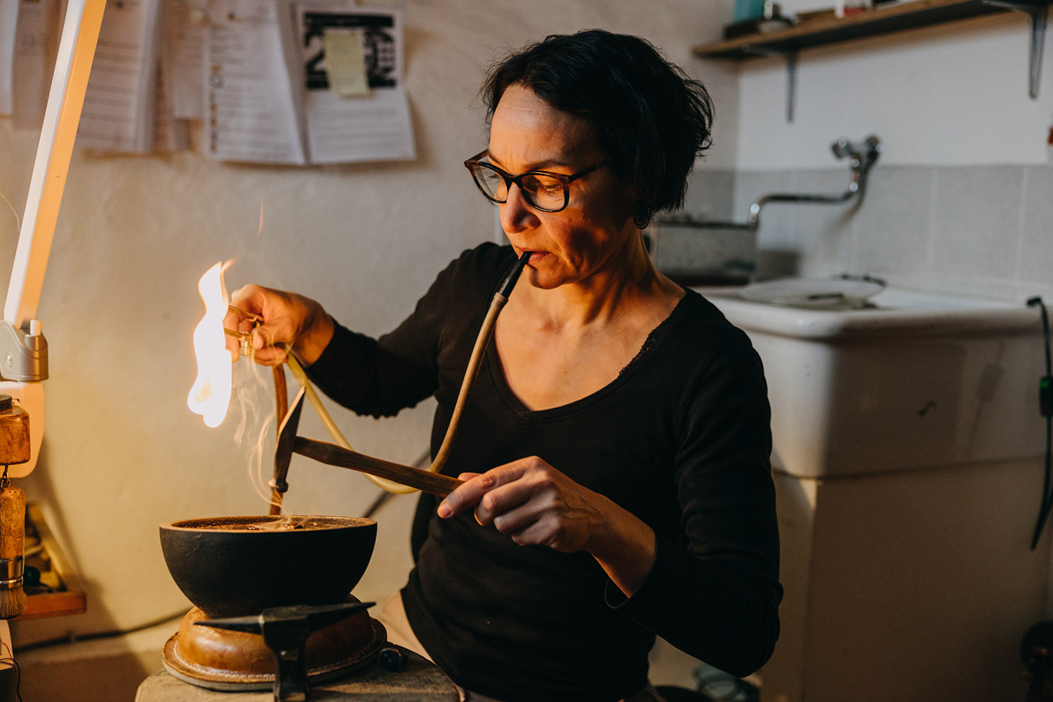 Silke Knetsch and Christian Streit met while studying at the Escola Massana in Barcelona in the 1990s and became a couple. From a family of goldsmiths, Silke focused her energies on finding her own design language in Barcelona. Christian, on the other hand, had followed very strict goldsmithing training and loved the freedom that living and working in Barcelona brought. In 1997, with their first child on the way, the pair moved back to Freiburg and opened their joint studio, which is still centered around their shared workbench. Artistically, Silke and Christian's works differ greatly, yet they share the same philosophy: with their expressive creativity, they contradict contemporary design's cool image. Their jewellery creations are characterised by opulence and richness.
