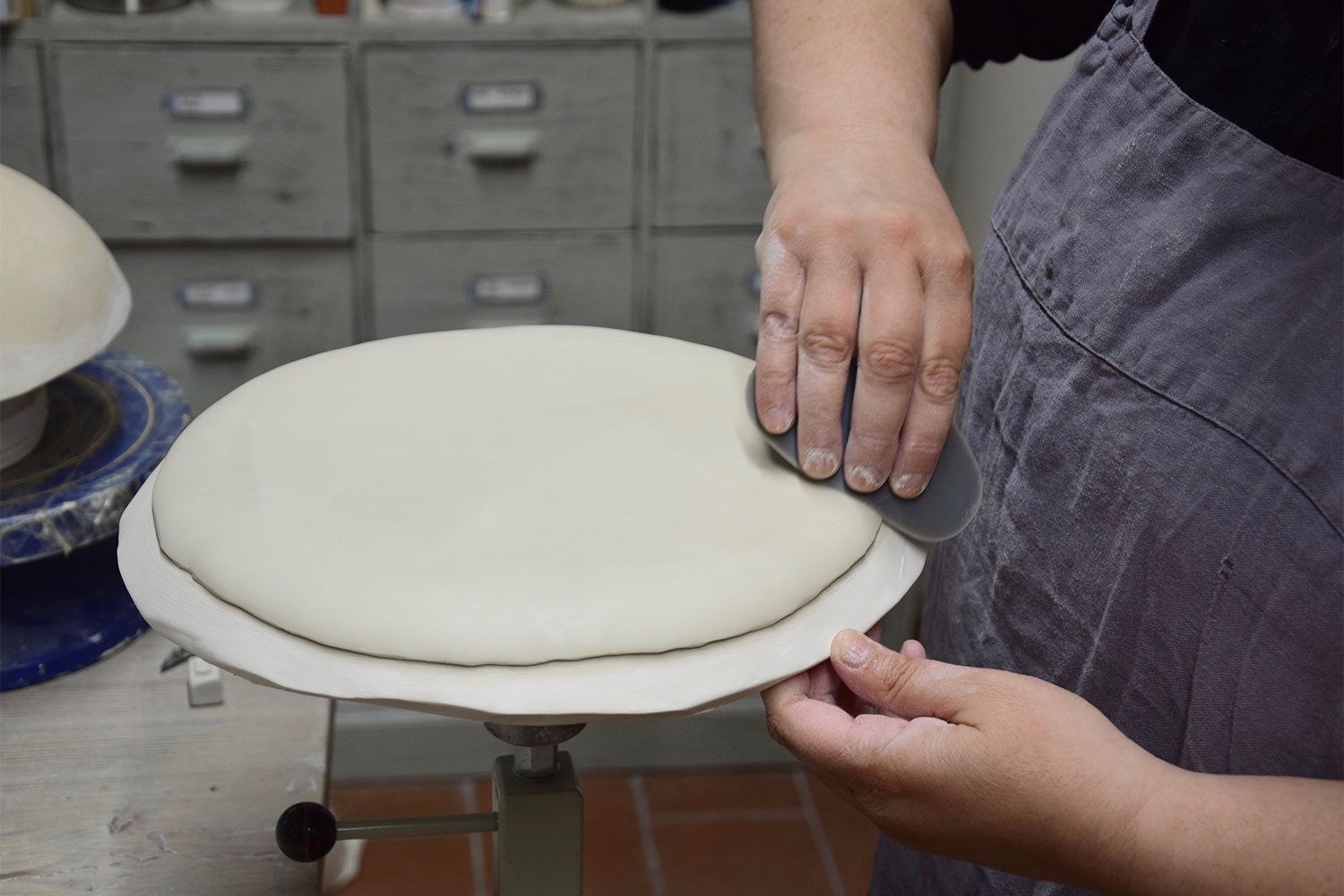I work mainly using the slab technique, I try to get the clay thinner and thinner in order to enhance translucency. The light passes through my tableware which is the characteristic I love the most in porcelain.