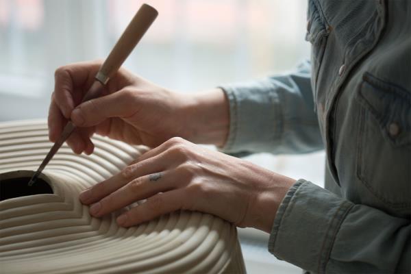 Simona Janišová is driven by a thirst to explore, create and to work. She is drawn to the feeling that working with ceramic materials gives her. They are part of her life, allowing her to express herself and to communicate a wide range of ideas and inspirations. “I‘m fascinated by the power of clay to build an intimate relationship with the viewer,” she explains. Simona enjoys creating both functional and sculptural pieces. By creating objects for everyday life, she knows that they will be cherished by their owners. “Sometimes, it is me shaping the clay, other times the material is reshaping my personality and, through my artwork, I’m keeping an open dialogue with the outer world,” she reflects on her connexion with her principal material.