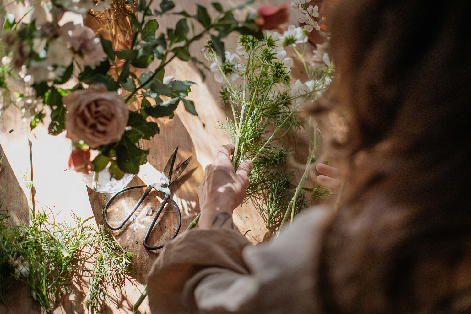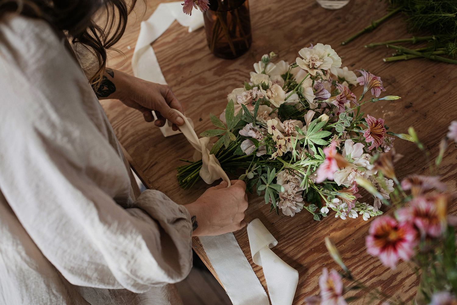With a background in biodynamic gardening and graphic design, Sophie Wiking decided to study floristry, too, because it was the combination of all her favourite things: working with organic materials, getting her hands dirty, and visual creativity. She admits she spent most of her training days in Malmö doing the exact opposite of what she was told. "When explaining the spiral technique, my teacher kept telling me that the bouquets had to have the right shape, round and symmetric," she recalls. "I found this ridiculous. I knew at once that I wanted to step away from the traditional way and create something more natural." Faithful to her resolution, nowadays Sophie is known for her delicate arrangements with lots of frills and ruffles. Somebody once called her the “the queen of bounce”, because her bouquets are never too compact or stiff, they are "lagom", just right, in Swedish.