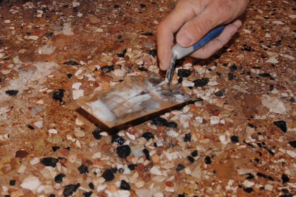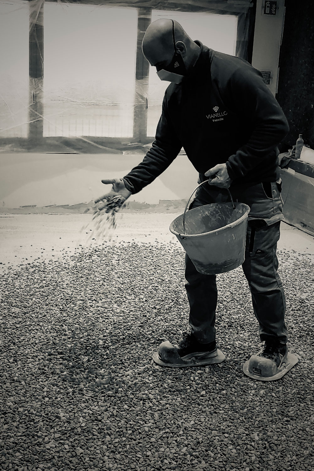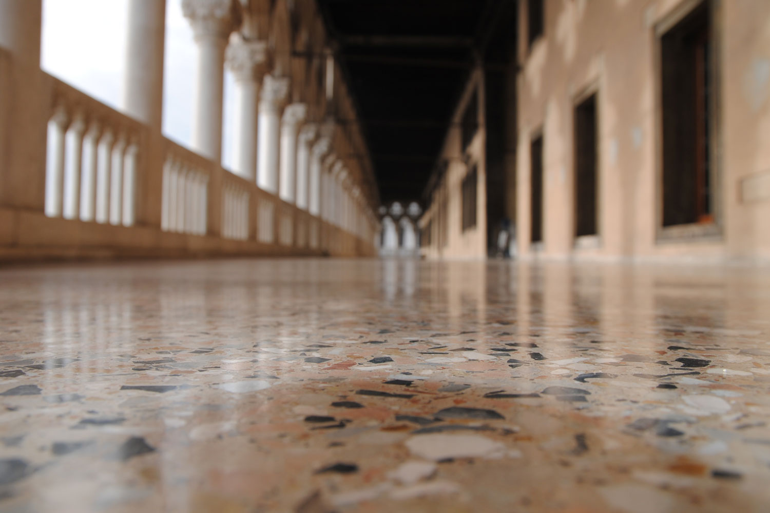 Stefano Vianello was 15 years old when he started an apprenticeship in a restoration company one summer holiday. After finishing high school, he was hired. Despite being very young, he was fortunate enough to work with some of the best venetian masters, assimilating the most ancient techniques. When he was 24, he decided to set up his own business and founded the Vianello Pavimenti, together with his brother Marco. They specialise in Venetian terrazzo – also called Venetian seminato – the typical flooring of the Venetian palaces. It is a type of technique born from the reuse of waste from the processing of marble and other stones, they are then mixed with lime or cement. It may contain coloured glass or semi-precious stones. Each terrazzo is a unique work of art: it is impossible to reproduce the same texture or pattern twice.