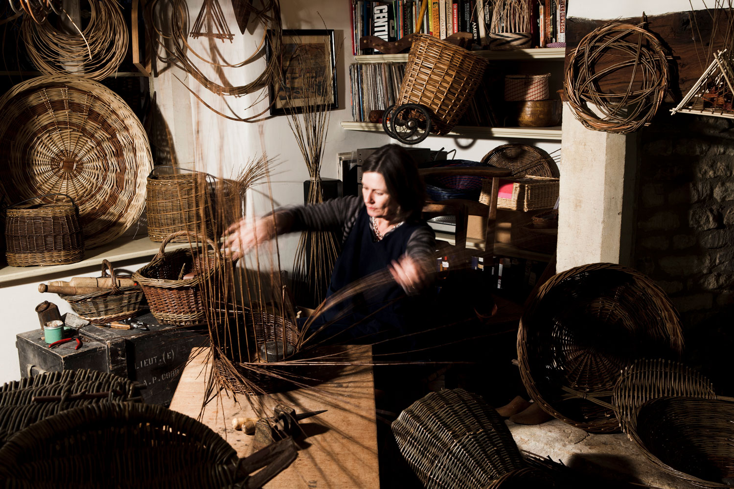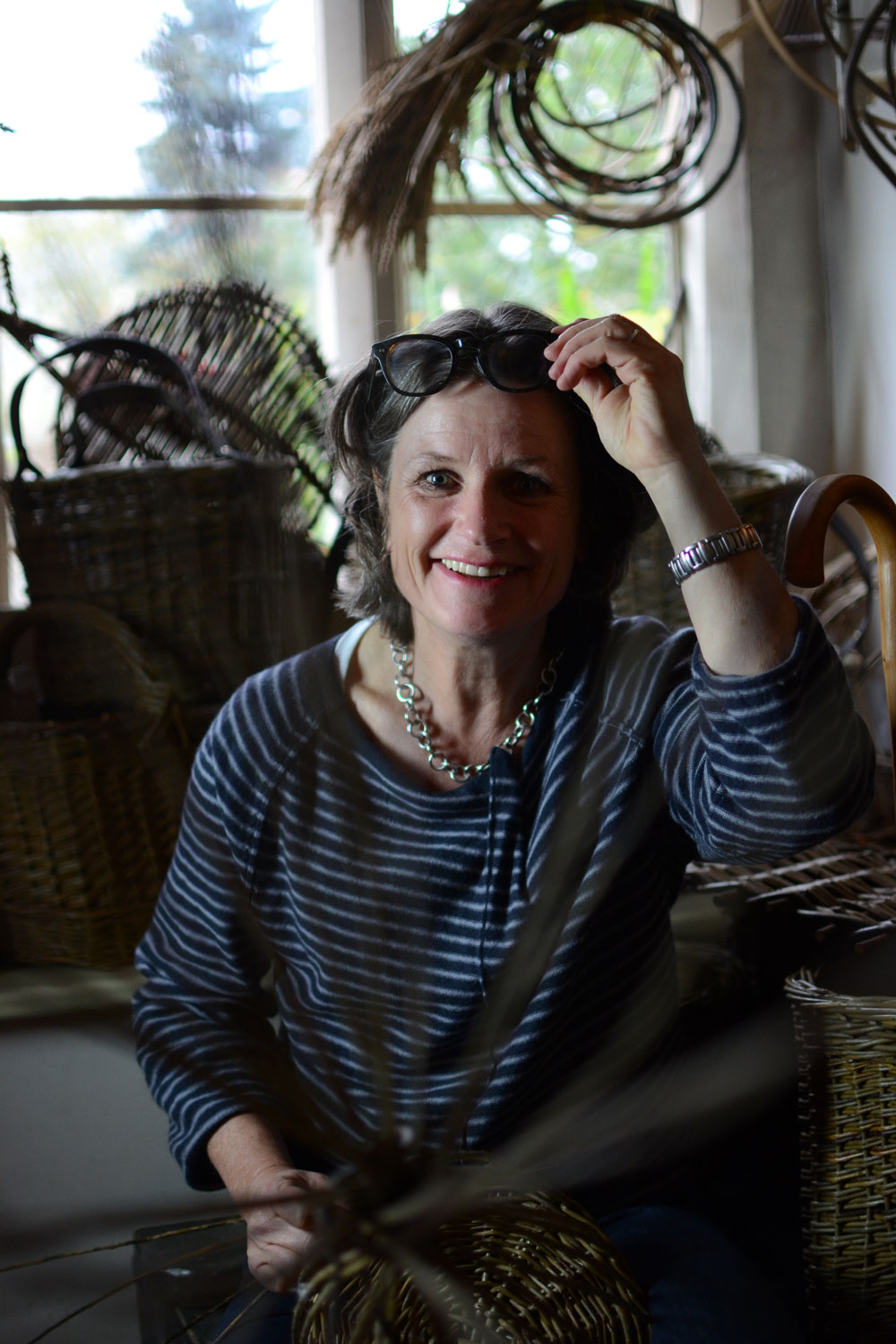 Susan Early has over 20 years of experience making baskets. She combines willow with hedgerow materials to create pieces which are strong, physically and in character. Her homely baskets bring together craft skills, nature and an understanding of form. She studied visual art at the University of Gloucestershire and then completed a City and Guilds course specialising in Creative Basketry. Additionally, she received a Queen Elizabeth Scholarship to study with master basket maker David Drew in France. As a maker she is materials driven and explains when working on larger sculptural work how the willow ‘choses’ a direction, saying “I enjoy letting it tell me which way to go and I follow it”.
