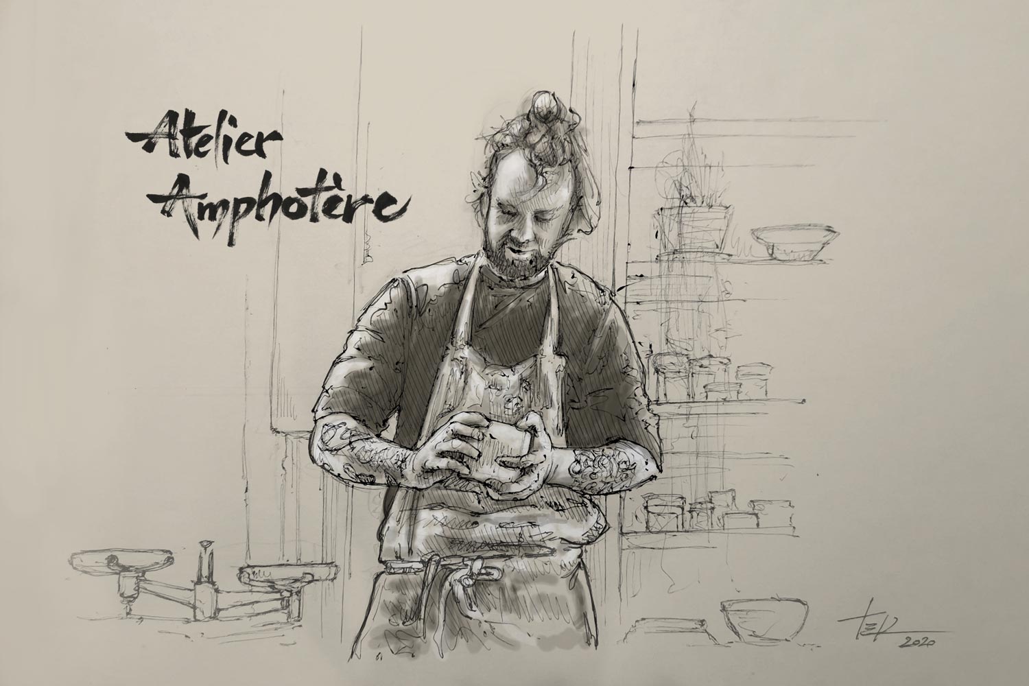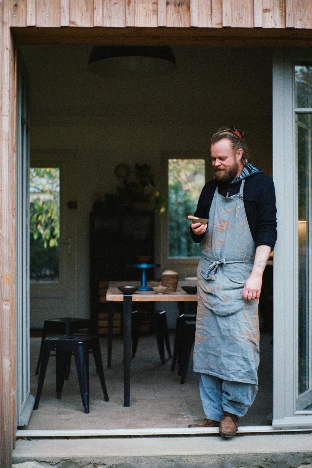 Originally from the north of France, Sylvain Lequenne worked for several years in the field of environmental protection before reconverting to ceramics in 2016 at the age of 34, after three years of training at the CNIFOP in Burgundy. He immediately felt in harmony with the material and was seduced by the infinite possibilities of decorating and glaze firing his pieces with mixed sandstones. Atelier amphotère was launched shortly after in February 2020 and now enjoys a solid reputation working with clients such as French Michelin-starred chef, Sylvain Guillemot, won over by Lequenne’s creations. His work is part of an instinctive approach whose inspiration is rooted in nature and the primitive arts, albeit showcasing a contemporary twist.
