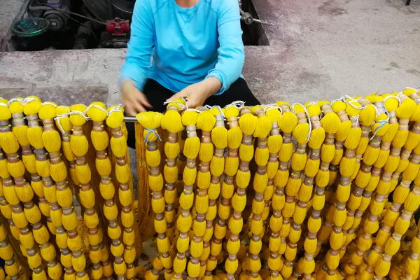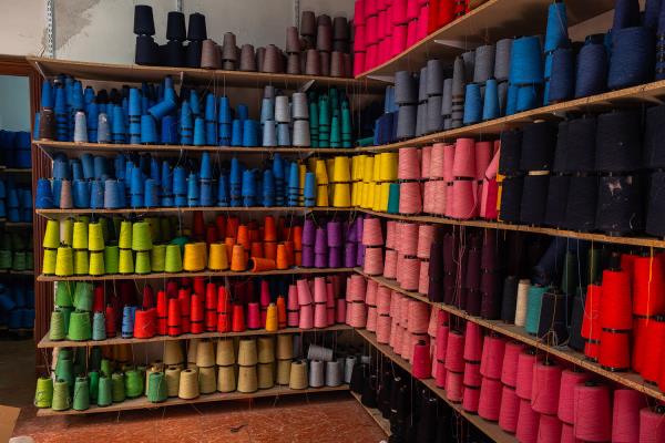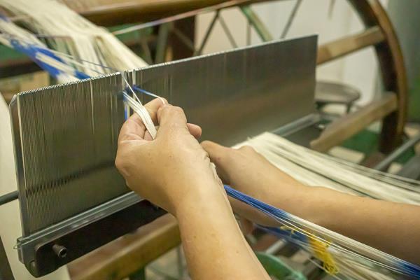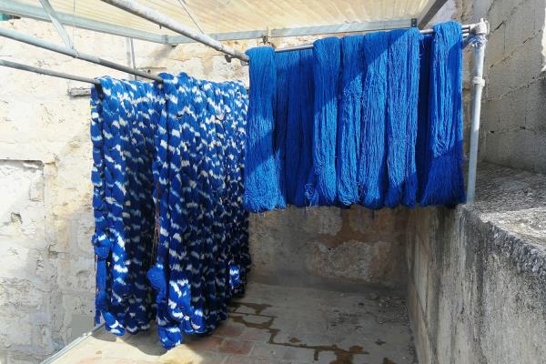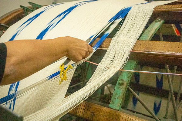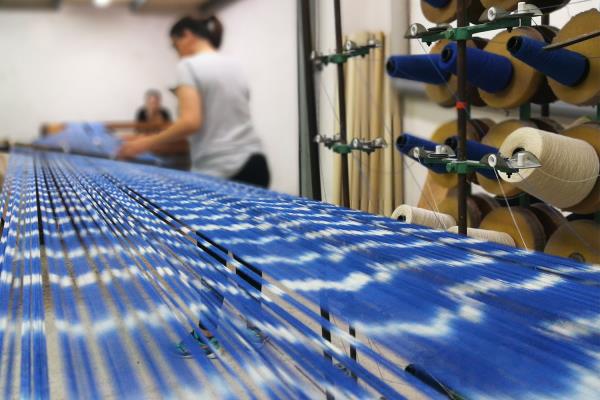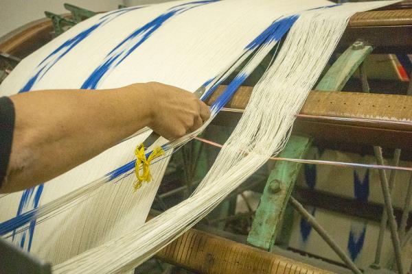 Biel Riera Crespí was born in Lloseta where he lives and works, as did his parents and grandparents. The Riera family specialises in the manufacture of Ikats, a fabric that has become part of Mallorca’s identity. The particularity of Ikats is that the cotton threads used to make the fabric are first dyed and then woven, so that the print is actually not a print but a woven pattern. The process requires a lot of accuracy but has spectacular results and was probably introduced to the island by oriental merchants.