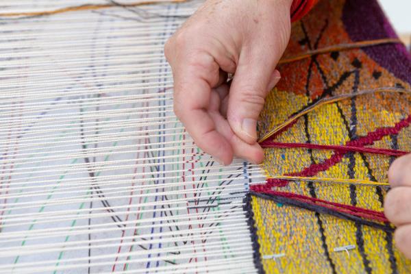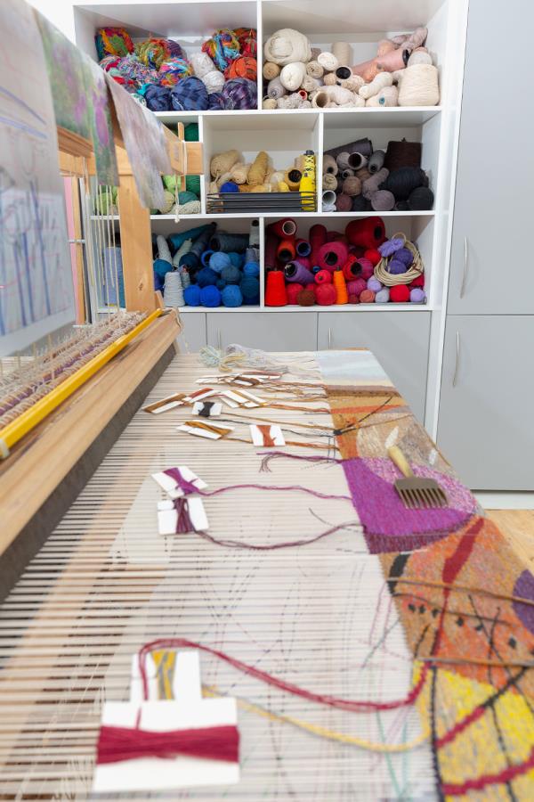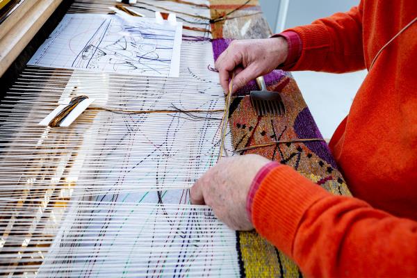 Terry Dunne’s weaving studio is located in Wexford set back from the sea front, a peaceful location situated between Kilmore Quay and Bannow Bay. The perfect location to spend days lost in creating his intricate tapestry pieces. Steeped in this environment, it is small wonder that Terry draws much of his inspiration from the natural world. His pieces bring together traditional skills and contemporary design resulting in stunning one-off works of art. He compares his process to that of a painter, translating his drawings and sketches into fibre; he uses threads rather than brushes. Terry has been exhibiting nationally and internationally since graduating from Dunlaoghaire College of art in 1980.