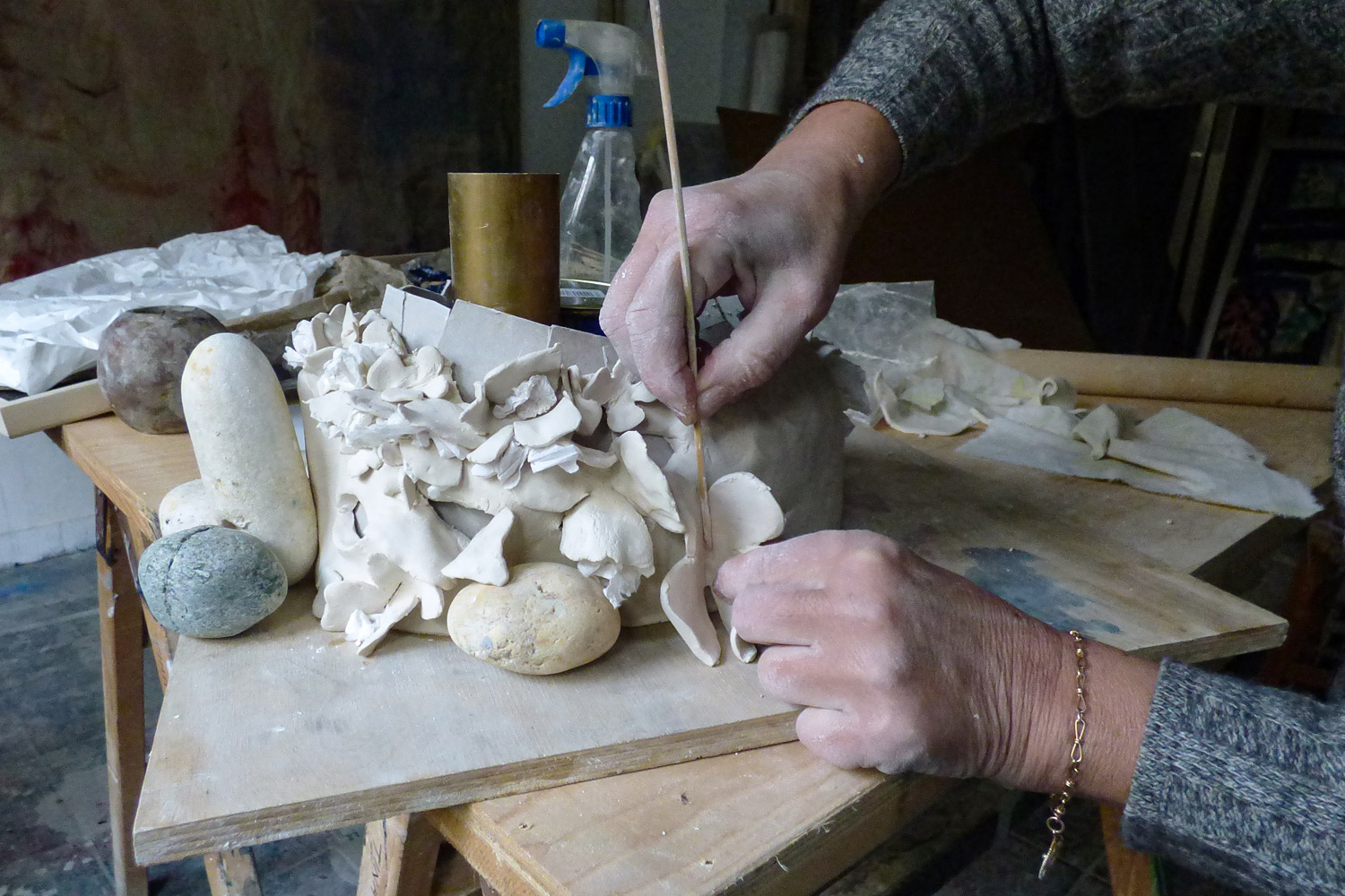 Tina Karageorgi created her first art ceramics for her solo show in 2011, entitled The Forest. She loves everything about her craft, “From the feel of the material in my hands to the awe at the finished product”. She studied painting and ceramics at the Athens School of Fine Arts and when creating her objects, she likes to combine different disciplines. Tina believes that ceramic art is hard labour in every sense. “Giving "birth" to a concept is very different to having a commission; it is a process that takes a long time. Sometimes ideas lie for months in my books but my mind is wondering about them incessantly. In many cases, it takes many trials and much disappointment. Ceramics is whimsical to a big degree.”