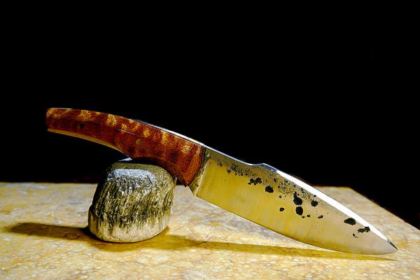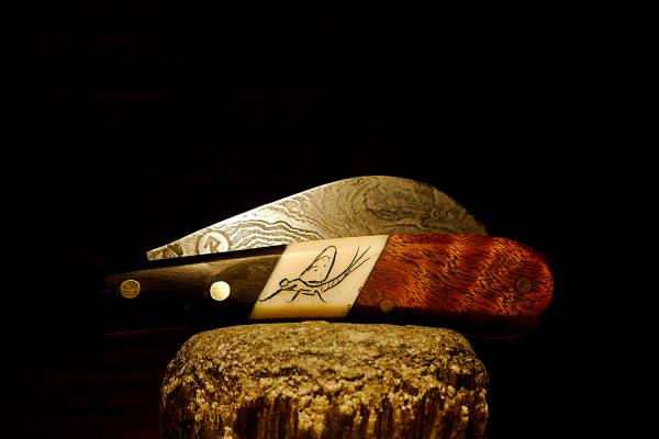 Tom Regula's knives and fishing rods are all handmade, unique creations. "Not only do they work perfectly, but they are also objects of beauty," says Tom. With a background as a garden designer, jewellery maker, and amber carver, Tom combines many skills into his blacksmithing craft today. Born in Poland, he has been fascinated by metal forging since childhood. He made his first knife at the age of 7, when he used to operate the bellows at his uncle's forge. By 8 years old, he was already a passionate fisherman with a dislike for mass-produced objects, so he began to modify his fishing rods. Tom received his first commission at the age of 16. Concerned by the harm caused to the environment by the extraction and processing of iron ore and other rare metals, in the early 2010s Tom chose to work only with what was ethically available to him.