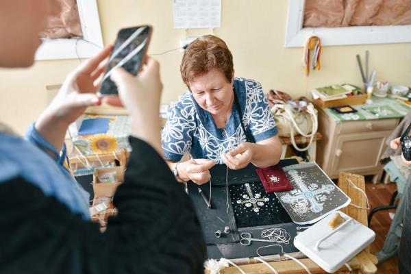 Goldwork embroidery is one of Russia’s most precious handicrafts. The oldest peices, discovered by the Russian archeologists during the 2010 expedition in Torzhok, date back to 1238. The craftsmen of Torzhok sold their art to noblemen, including the Romanov family. In particular, the Torzhok goldwork embroidery was seen at the coronation of Emperor Alexander III and Empress Maria Feodorovna. However, it wasn’t until 1894, when Torzhok resident Dmitry Romanov opened the goldwork workshops. Today the manufactorer employes around 300 craftsmen, who preserve the ancient tradition and use shiny threads containing 5-8 percent of gold to create embroidered paintings, brooches, scarves, belts, bags, headwear, ceremonial religious garments and even icons.