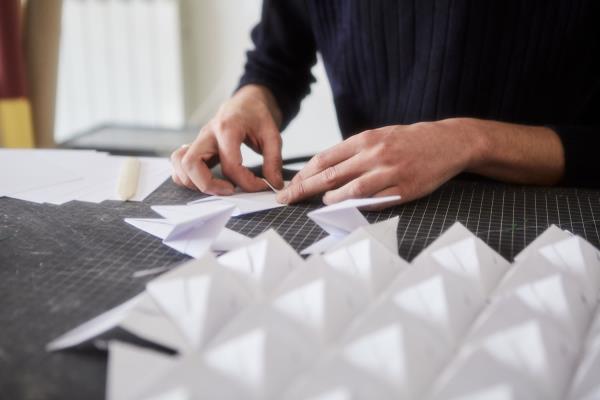 Uroš Mihić has been a creative soul since he was a child. His father was an architect, his grandfather a set designer: “I grew up surrounded by projects, sketches and drawings, whose secrets and techniques I learned from a very young age.” So when it was time to choose his course of study, it just felt natural to pick art and design, first in his native Serbia, then in Milan, where he moved to attend interior design at Politecnico University. He never went back. Nowadays he’s a successful designer and a star of origami, the Japanese art of paper folding, which he uses to create small decorative objects, geometrical compositions and sculptures, even huge and scenographic installations for international brands like Armani and Pomellato.