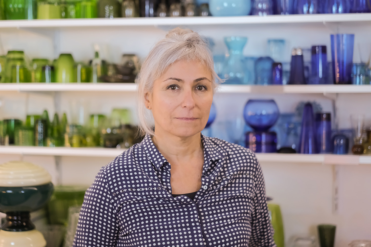 A lighting technician and director, as well as a decorative painter, Valérie Menuet joined the artistic space Le Lieu-dit in Nantes in 2000. Here, she developed her experimental design work and almost two decades later, opened her own studio. In her work, she repurposes discarded objects, primarily glass, to make visually striking high-quality LED lighting and lamps. Valérie approaches each piece like a sculptural composition, seeking contrast and variation of forms to achieve a coherent geometrical whole. Her main inspirations include artistic and design movements, like modernism, Russian constructivism, early industrial era aesthetics, brutalist architecture, Bauhaus, and the Memphis movement, as well as the work of artists Nathalie du Pasquier and Ingo Maurer.
