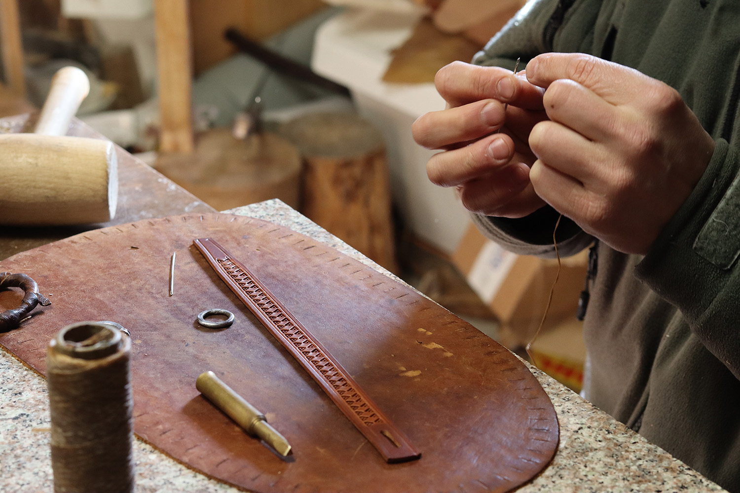 Martynas Švedas studied biology, but his passion for history triumphed in defining him. Fully immersed in ancient times, Martynas plays and sings in a Baltic music band and has been involved in martial fraternities since he was a teenager. This is where battles of the past are re-enacted and why he had no choice but to learn the craft of leatherworking. He makes traditional belts and pouches form leather, using information from books and historical data, to produce items fit for re-enactments which aim to be historically accurate. Creativity and history are both important in Martynas' work. It is not enough to copy. "The most accurate description of my approach would be that it is an artistic expression based on history and archaeology," says the artisan who calls himself a pouch maker.