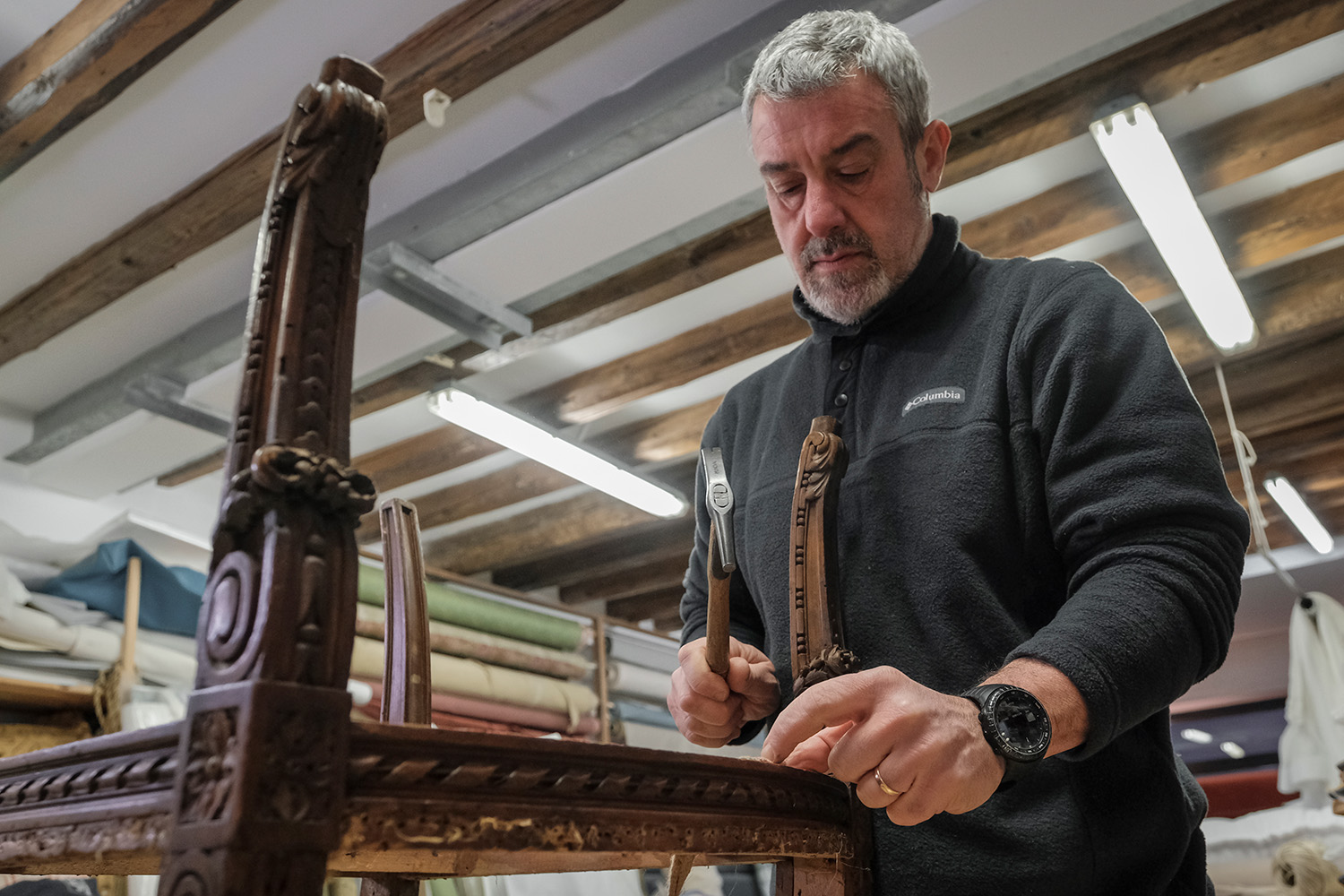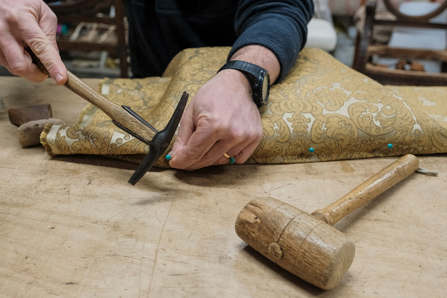 The history of the Tappezzeria Vianello is extremely traditional, as it is their approach to upholstery. Uncle Guido founded the Bottega in 1947, right after the end of World War II, and his nephew Giovanni Vianello developed the business in the 1970s. Today Giovanni is passing the workshop on to his son Davide, while remaining active in the workshop. One of the oldest addresses in Venice for this craft, the Vianello Bottega offers a wide range of services matching the needs of a city whose exceptional heritage requires the ability to master traditional techniques as much as contemporary ones. Among their clients are some of the best-renowned landmarks of the city: the Saint Mark’s Basilica, La Fenice Theatre, the Gritti Palace Hotel, the Accademia Galleries and some of the noblest palazzos in town.