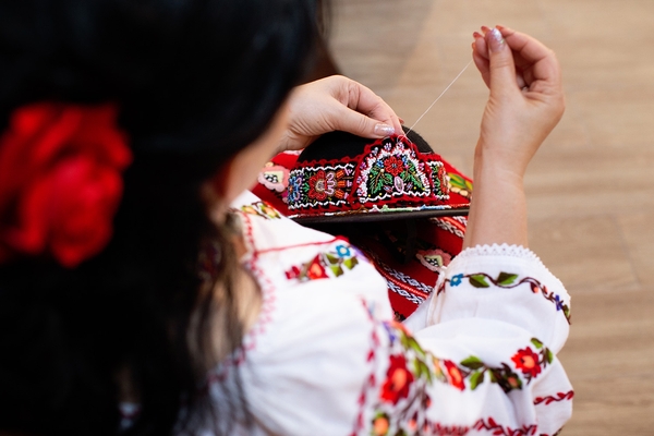 Virginia Linul inherited her passion for traditional art and costume-making from her mother, who is considered to be one of the most skilled embroiderers in Tara Nasaudului (a historical region in north-eastern Transylvania). Over the years, Virginia has been involved in many projects that marked her professional path. Her participation in the Smithsonian Folklife Festival in Washington, D.C., in 1999, led her to fully commit to the promotion of Romanian traditional costume both nationally and internationally. In 2011, she collaborated with French designer Philippe Guilet on a fashion event that brought Romanian art into the spotlight by creating an haute couture collection with the help of Romanian artisans. In 2020, she opened the House of Traditional Costume Virginia Linul, a unique space that combines both a retail area and a museum displaying hundreds of costumes. She is also affiliated with the WhyWeCraft Association, coordinating stitching and bead embroidery, and as a mentor in co-design projects.