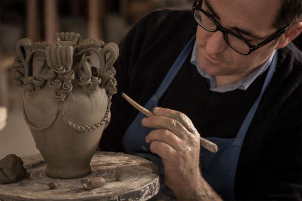 To create his colourful ceramics, Walter Usai follows the waning tradition that’s been in his family for over 150 years. He loves using colour – the brighter the better – and collaborating with others to create original objects that are connected to Sardinia’s vibrant history. Walter began learning his craft from his father at an early age. Mastering all the techniques of the lathe, he is afraid that his life’s work, which has existed for a millennium, is destined to disappear. Regardless of the future, Walter gets great satisfaction from his trade, which to learn requires consistency, patience, and above all, humility.