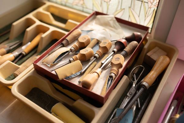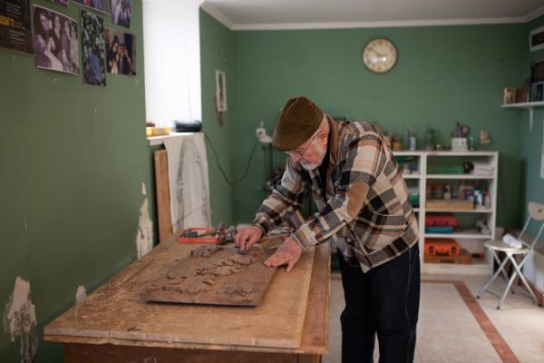 Mels Yeghiazaryan, the master craftsman, is a vital link in the chain of Armenian master woodcarvers․ Mels' carvings range from traditional Armenian cross-stones to wooden doors, mirrors, chairs, and cabinets. Being fascinated by wood art, he left his degree in Economics to pursue a career in the Arts. He found his own language to work with wood and considers himself to be his own teacher. He remembers fondly that for his first job, which was making wooden Armenian letters, he was paid for it with a car. Mels worked as the head designer for Enkeboll Designs for nearly a decade, a Los Angeles-based firm specialising in custom architectural woodcarving, where his designs continue to be reproduced. He currently lives in Armavir, Armenia, and offers apprenticeships in woodcarving and traditional Armenian calligraphy.