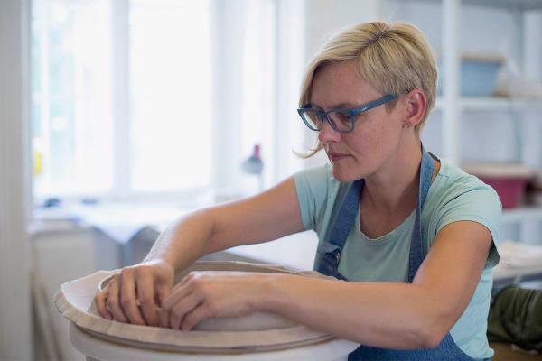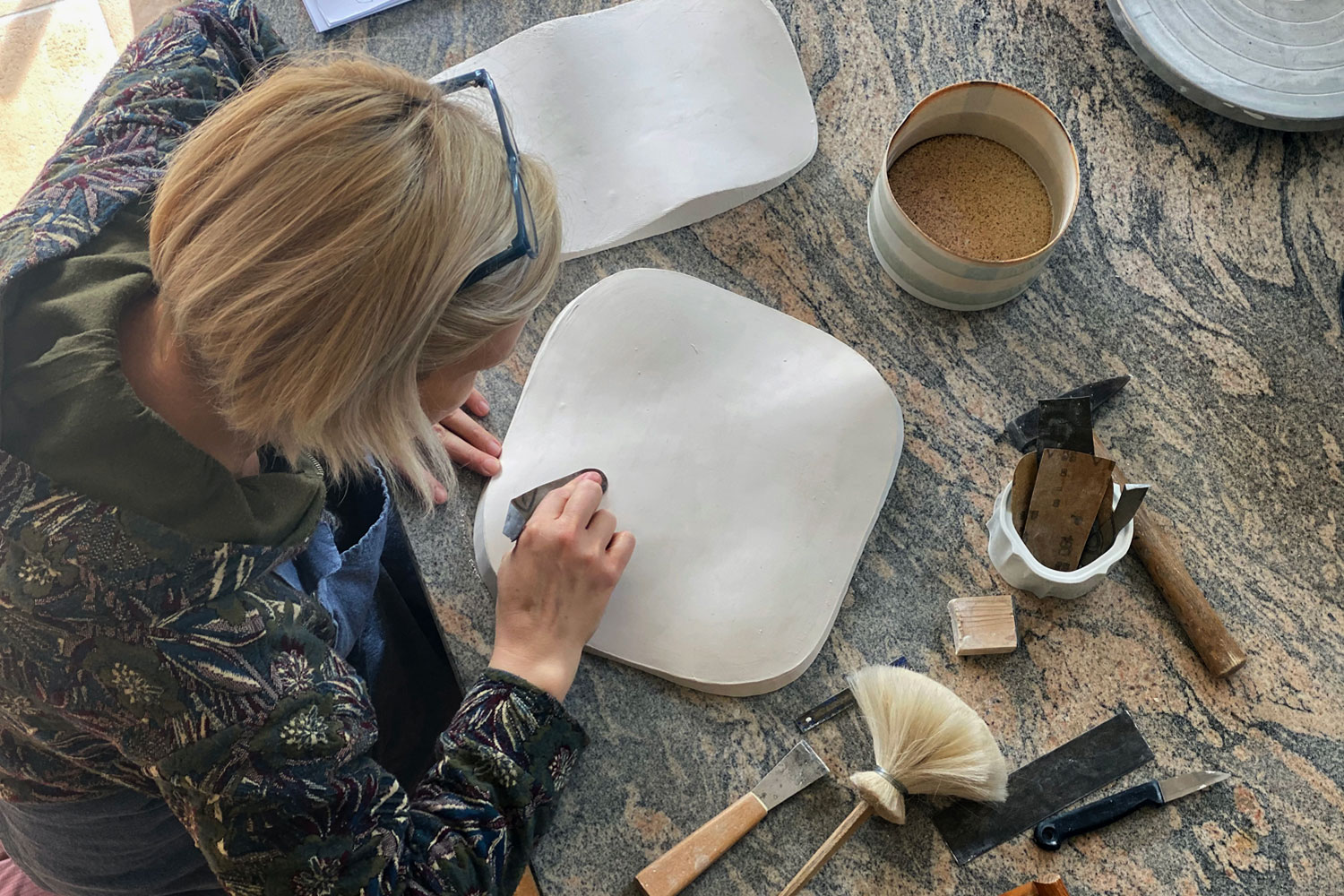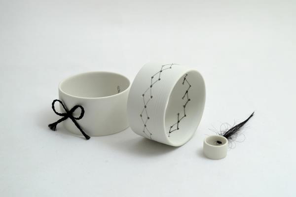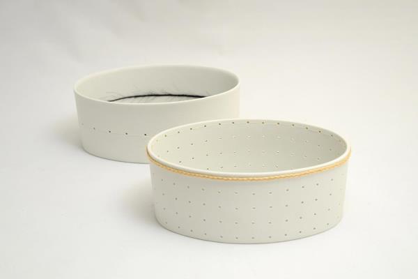 Zsuzsa Boldizsár has always been captivated by the feeling of ‘flow’ when she is completely immersed, absorbed in the creative process. This meditative state is extremely inspiring to her – in addition to the multitude of expression possibilities arising from ceramics. She experiments a lot with pieces that combine traditions of porcelain making and those of decorative embroidery, which are intensely present in her own family traditions. Her pierced and embroidered items are items located at the border of everyday objects and works of fine art. In her latest works, she has been researching the technical possibilities of porcelain making: for example, she was able to implement dying material between the single porcelain layers using a unique method developed by herself.