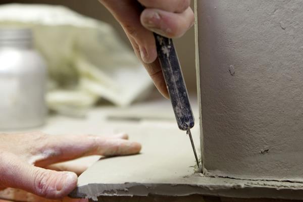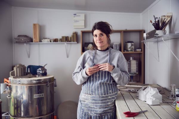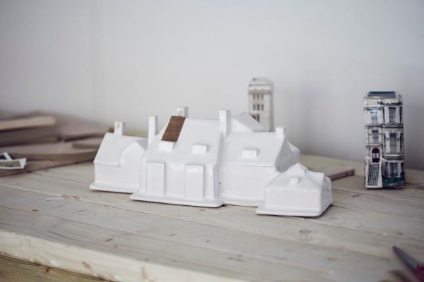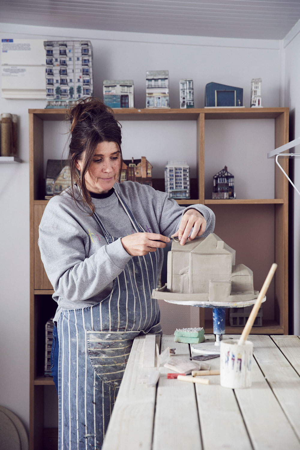 Alice Mara captures the highs and lows of everyday life in her three-dimensional ceramic collages. Her work involves skilled slab working to build the structure of the piece, this is then combined with collected imagery, often very personal to her clients. If you look closely you might notice hidden symbols in the work which represent the artist’s state of mind or the state of the world, such as a dustbin liner next to a swimming pool symbolising how rubbish life can be yet at the same time, there is joy to be found. Perhaps the playful and humorous use of imagery comes from her training as a stand-up comedian. Her work has won many awards and she has exhibited at the New York Print Fair.