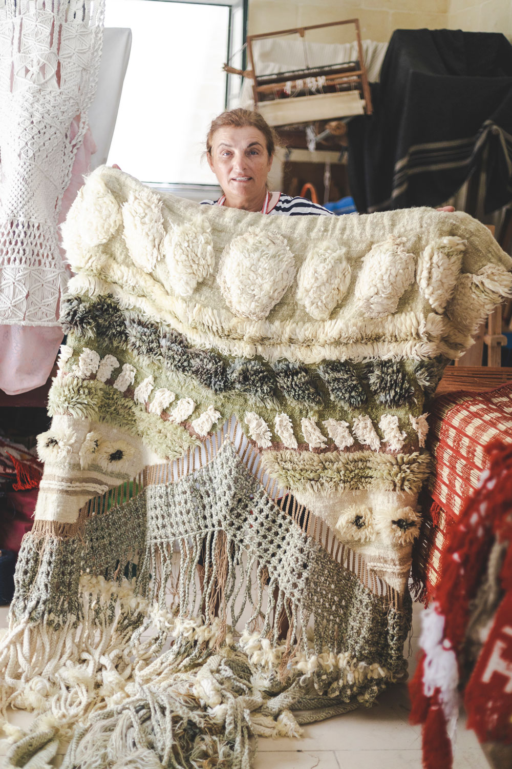 Today, master weaver Alda Bugeja is one of the few artisans remaining that is specialised in Malta's traditional weaving craft, for which she was awarded the national award for Achievement in Industry in 2000. Weaving has been a part of Alda’s life since her early childhood years. Watching her mother and older sisters skilfully weave intricate patterns, it did not take her long to start experimenting on her own. She is passionate about preserving this traditional skill while ensuring high quality is preserved, both in the raw materials that are used as well as in the weaving techniques employed. Weaving is one of the oldest crafts that has survived in Malta over thousands of years. For centuries it was one of the main sources of income for rural families across Malta and Gozo, with most families owning their own wooden weaving looms at home that they they would use to weave all their items of clothing and bedding.