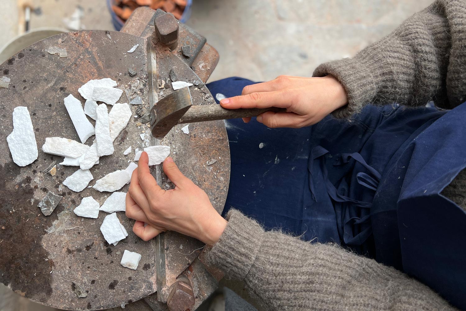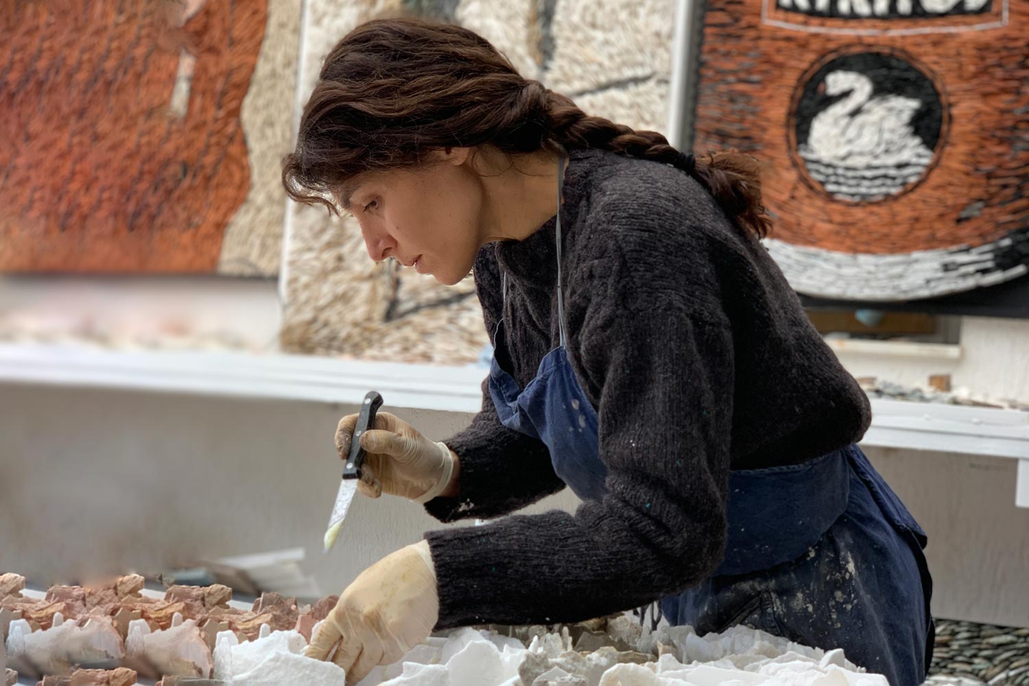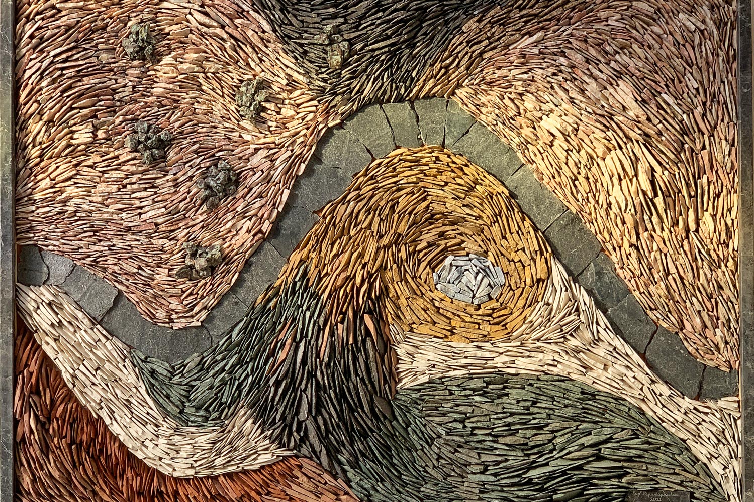 Eva Papadopoulou has found in mosaic her true means of expression. The Greek artist brings a new dimension to the traditional technique of this ancient craft by exploring the notions of movement and volume. Her mosaics are made up of hundreds of marble fragments in different sizes, which she assembles together in relief forms. Inspired by the abundant beauty of nature, her mosaic paintings often reflect moments in time; quiet landscapes bathed in a particular light she has captured. The motion created in each scene gives an impressionistic character to her work. Eva draws on her years of experience in her family's art foundry, where she gained valuable hands-on expertise working with various materials and was introduced to sculptural art in its diversity.